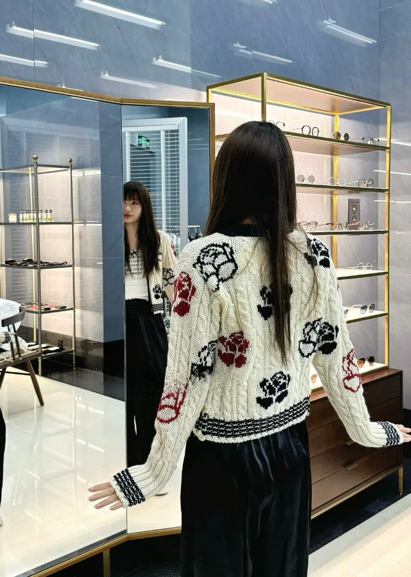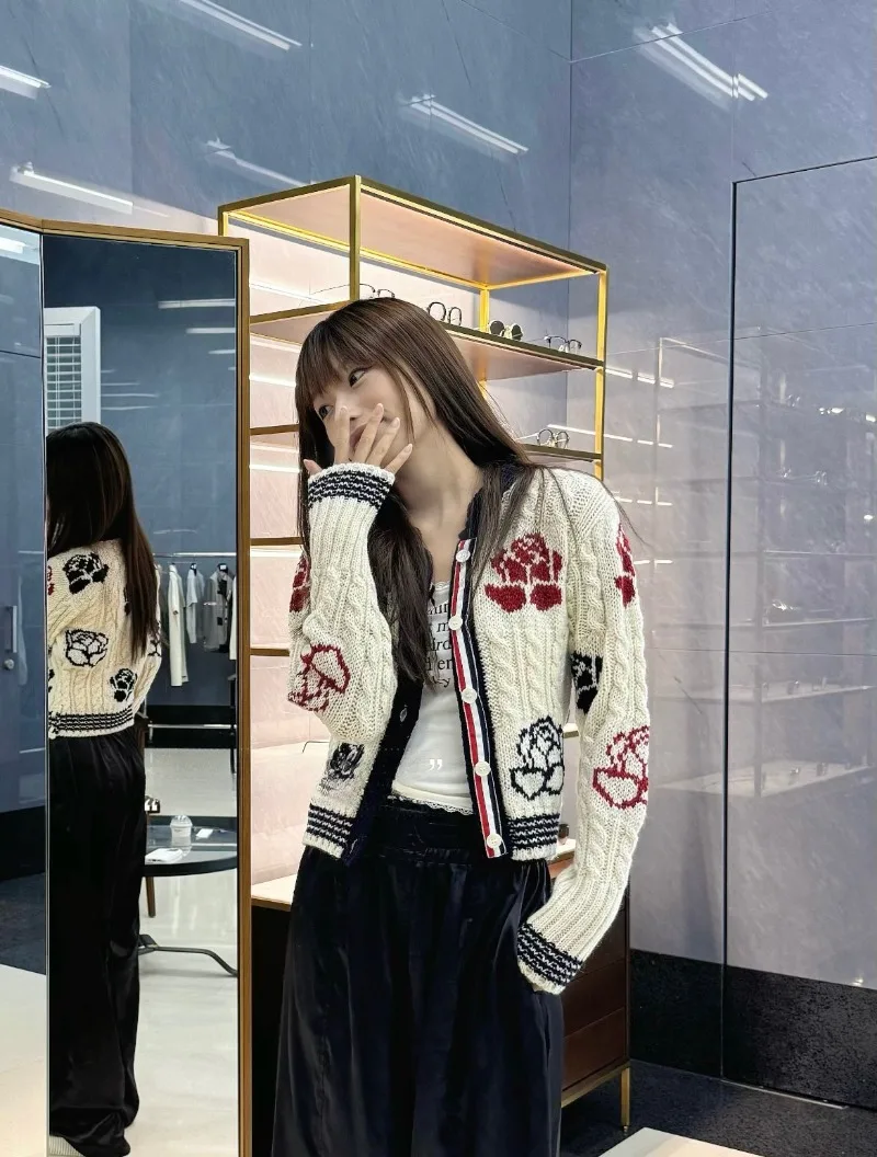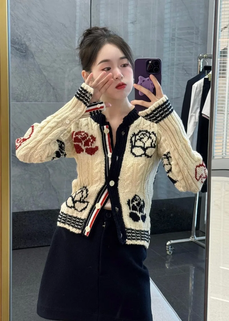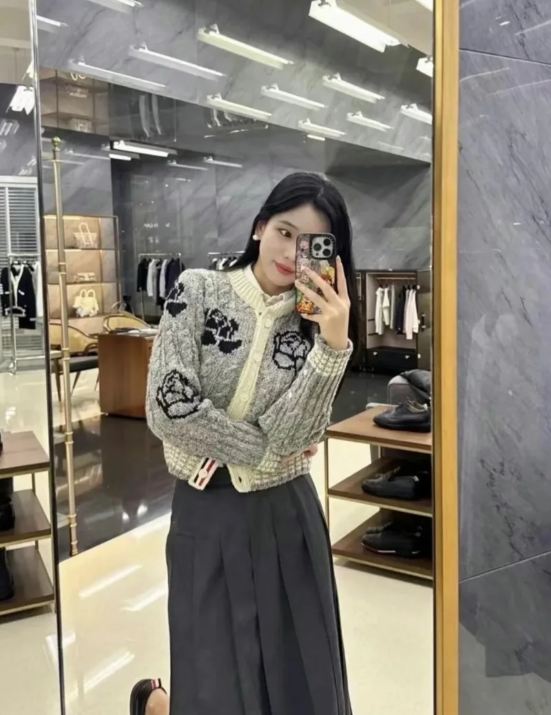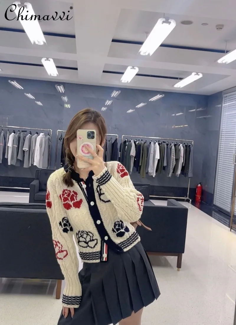 2024 Autumn and Winter New Knitted Cardigan Long-Sleeved Flower Temperament Versatile Short Outerwear Sweater For Women