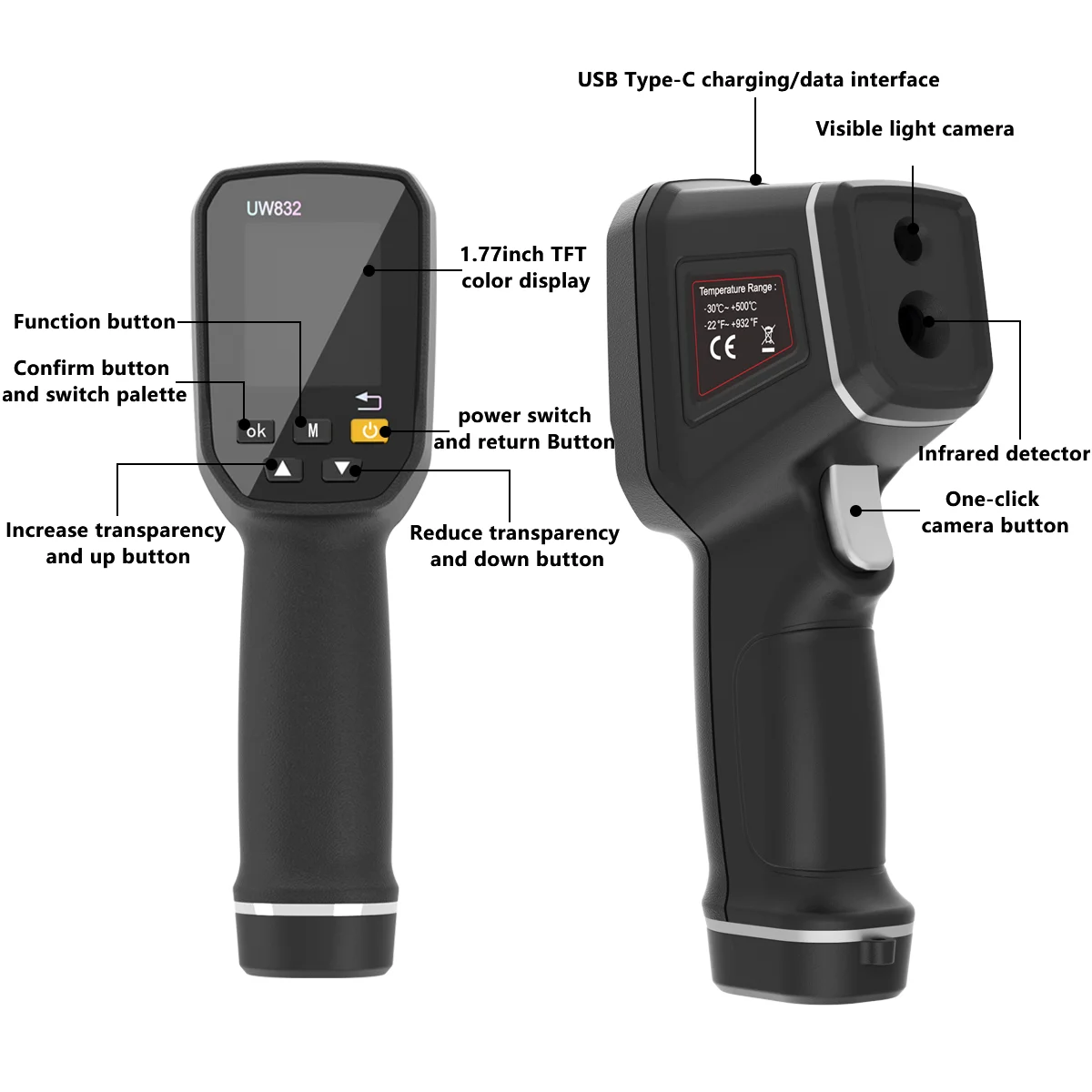 Temperature measurement range: -30℃ to +500℃ (-22℉ to 932℉)
