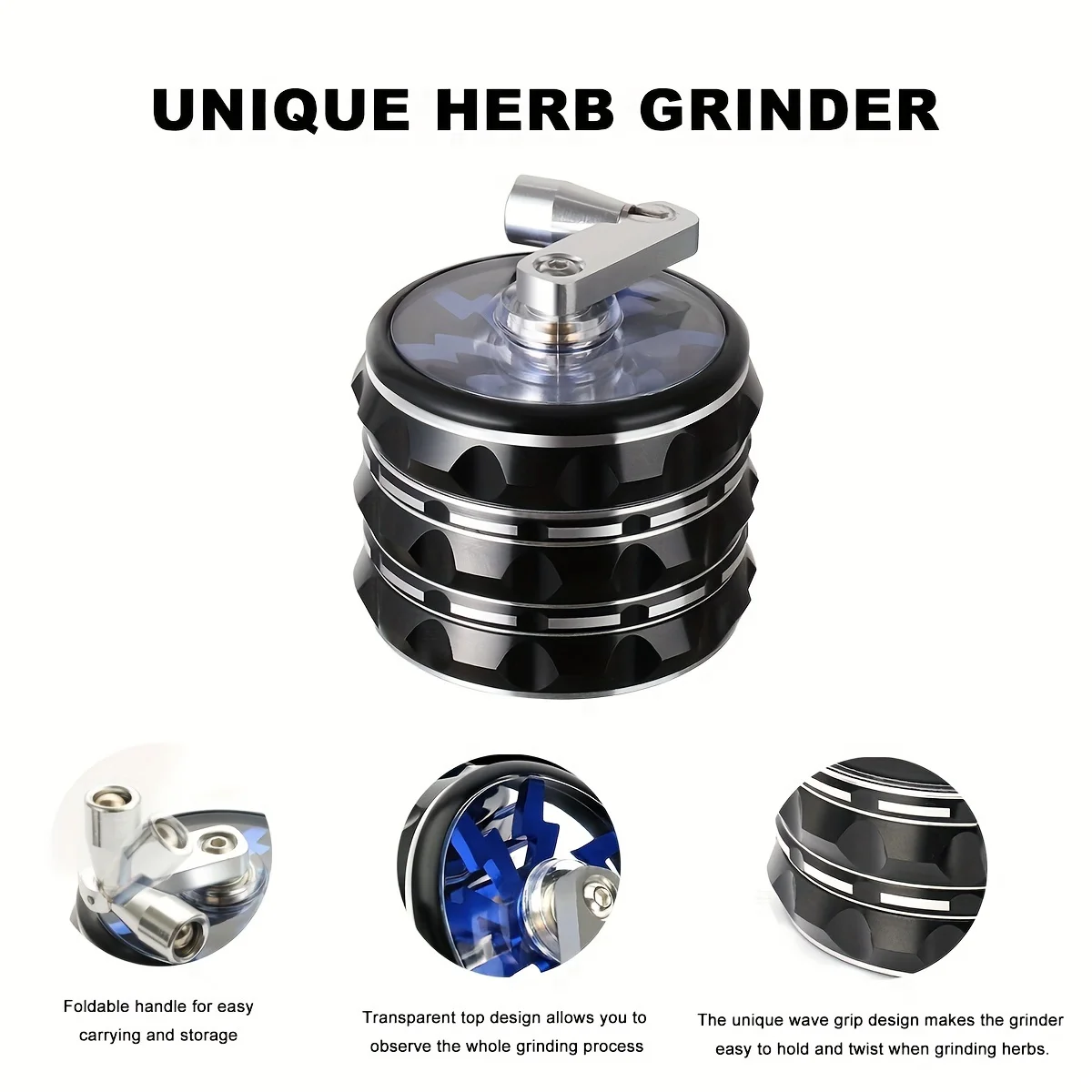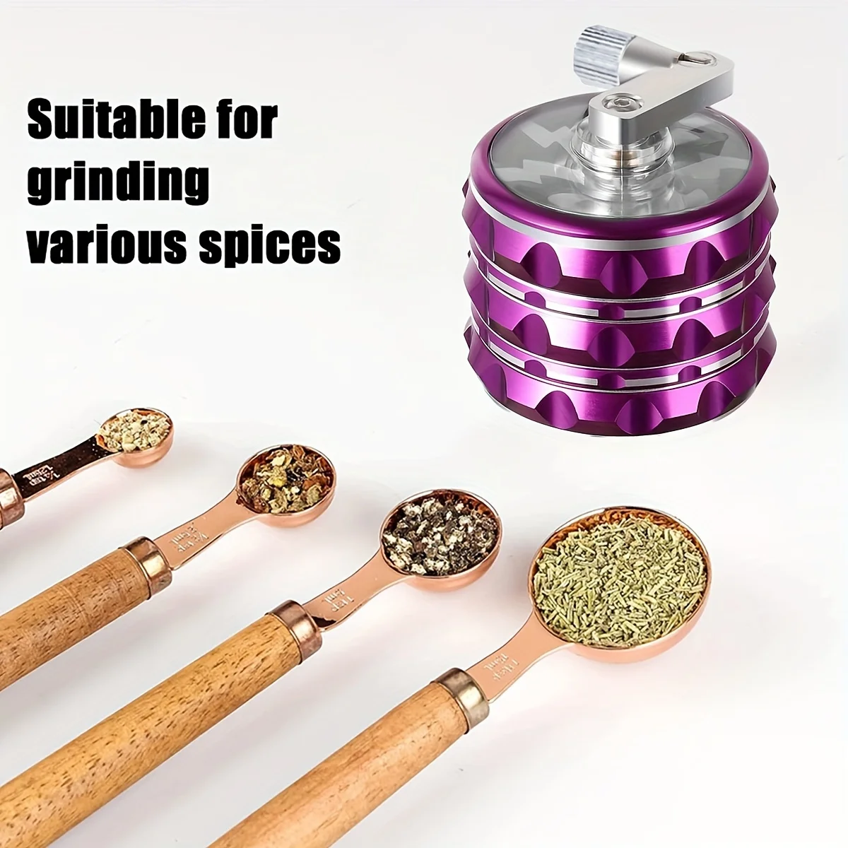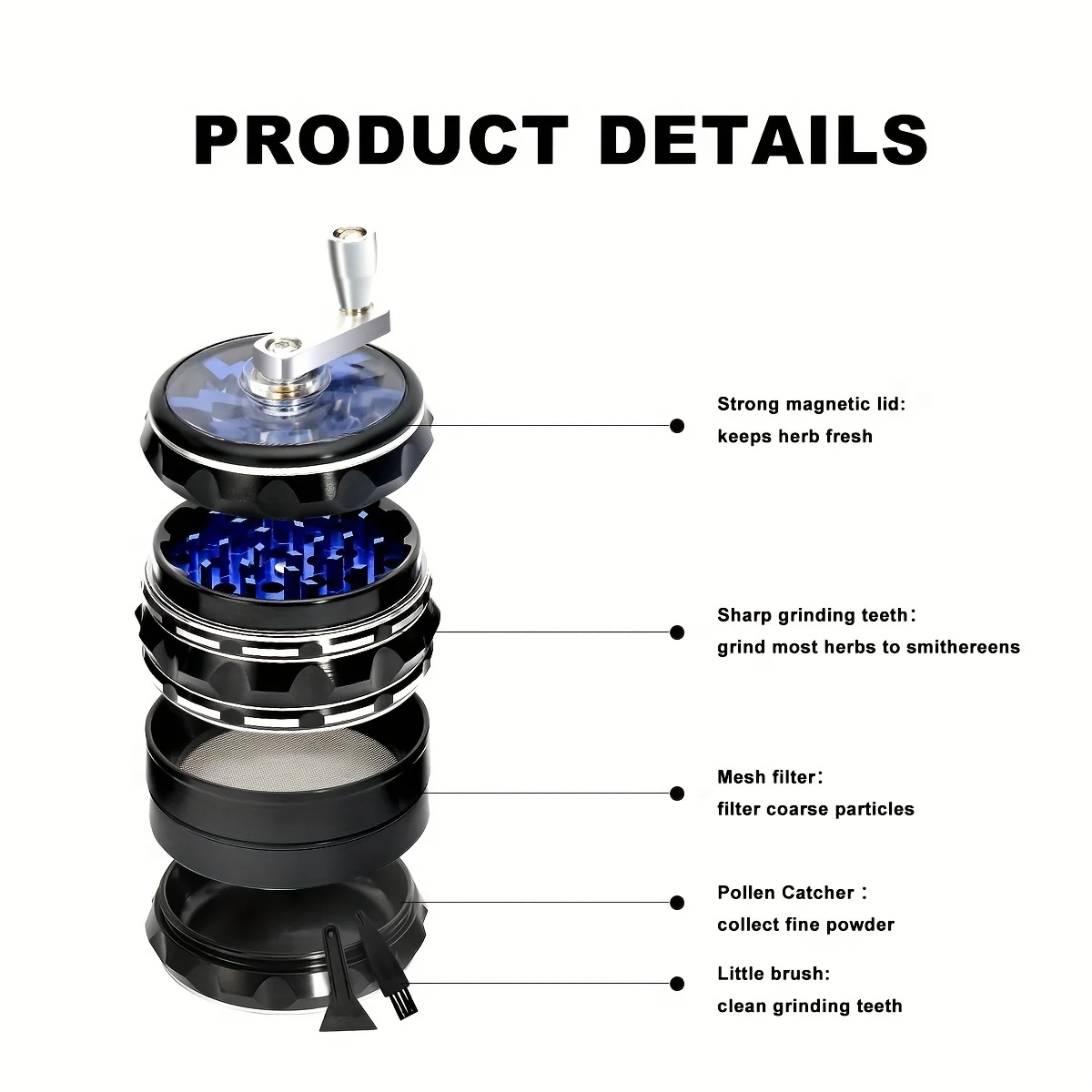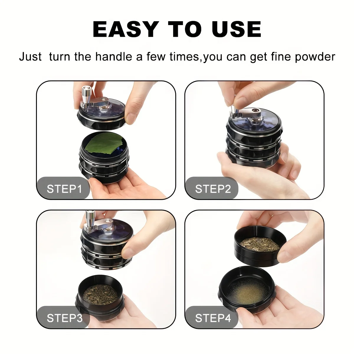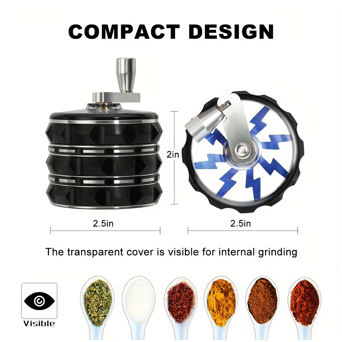 2.5" Manual Tobacco Grinder with Transparent Lid,Durable,And Aluminum Material - No Power Required 4-In-1 Dry spice Herb Grinder