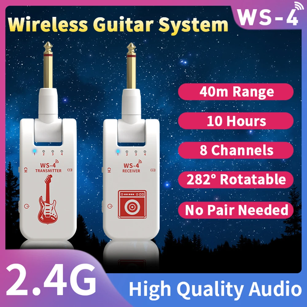 [Flexible and convenient]: The system has a 282° rotating head and is easy to use with different guitars and various instruments. It does not require pairing, just switch to the same channel on the transmitter and receiver.