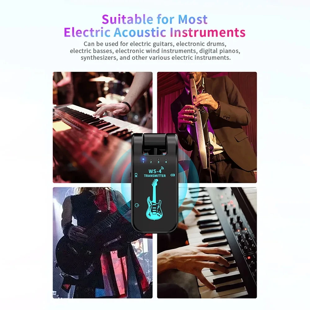 [Versatile compatibility]: The system has 8 channels to choose from and is able to support 8 devices at the same time, which is very feature-rich. It is equipped with a 6.35mm audio plug, which is compatible with all electronic instruments with 6.35mm jack. The real gold-plated technology ensures continuous, stable and high-fidelity transmission. It is suitable for various electronic instruments, such as electric guitars, electronic drums, electric bass, electronic wind instruments, digital pianos, synthesizers, etc.