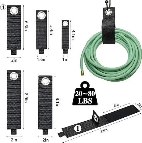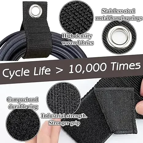 2.QUALITY MATERIAL: Made with heavy-duty weatherproof polypropylene, industrial strength hook and loop, and a rust-resistant stainless steel grommet, these heavy-duty storage straps are built to last—indoors or out. The heavy-duty hook and loop can hold up to 50 lbs/22kgs.