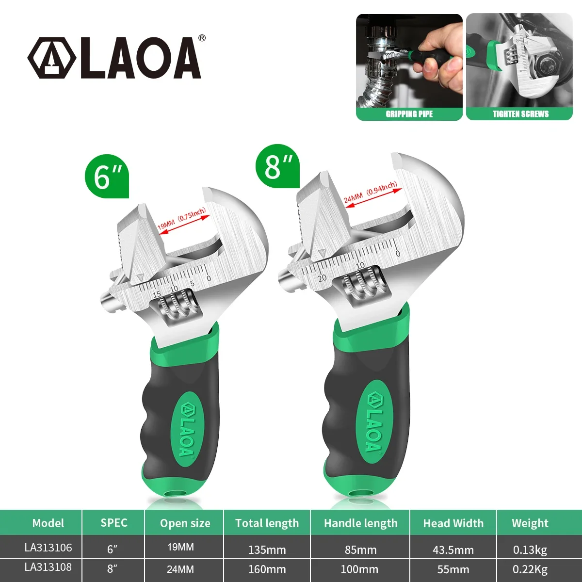LAOA 6inch/8inch Adjustable Wrench Monkey Wrenches Short Handle Spanner Pipe Wrench for Air Controller Pipe Hand Tools