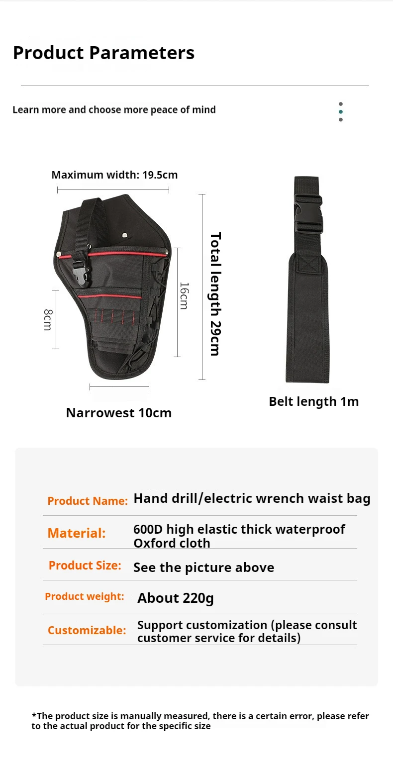 Portable Waterproof Multifunctional Waist Electric Drill Waist Belt Tool Pouch Bag for Wrench Screwdriver Professional Tool Bag