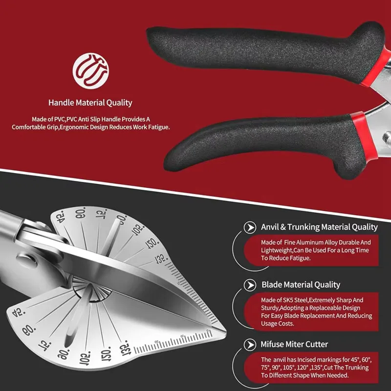 45°- 135° Multi Angle Miter Shears Miter Scissors For Soft Wood Plastic PVC Moulding Shoe Molding Angular Trim Cutter Tool