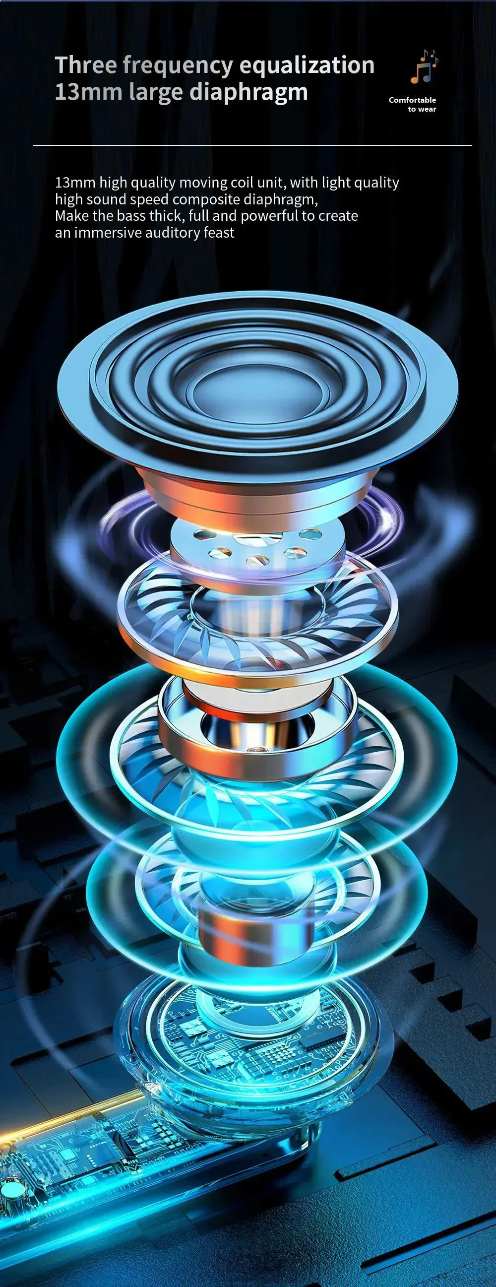 Three frequency equalization 13mm large diaphragm