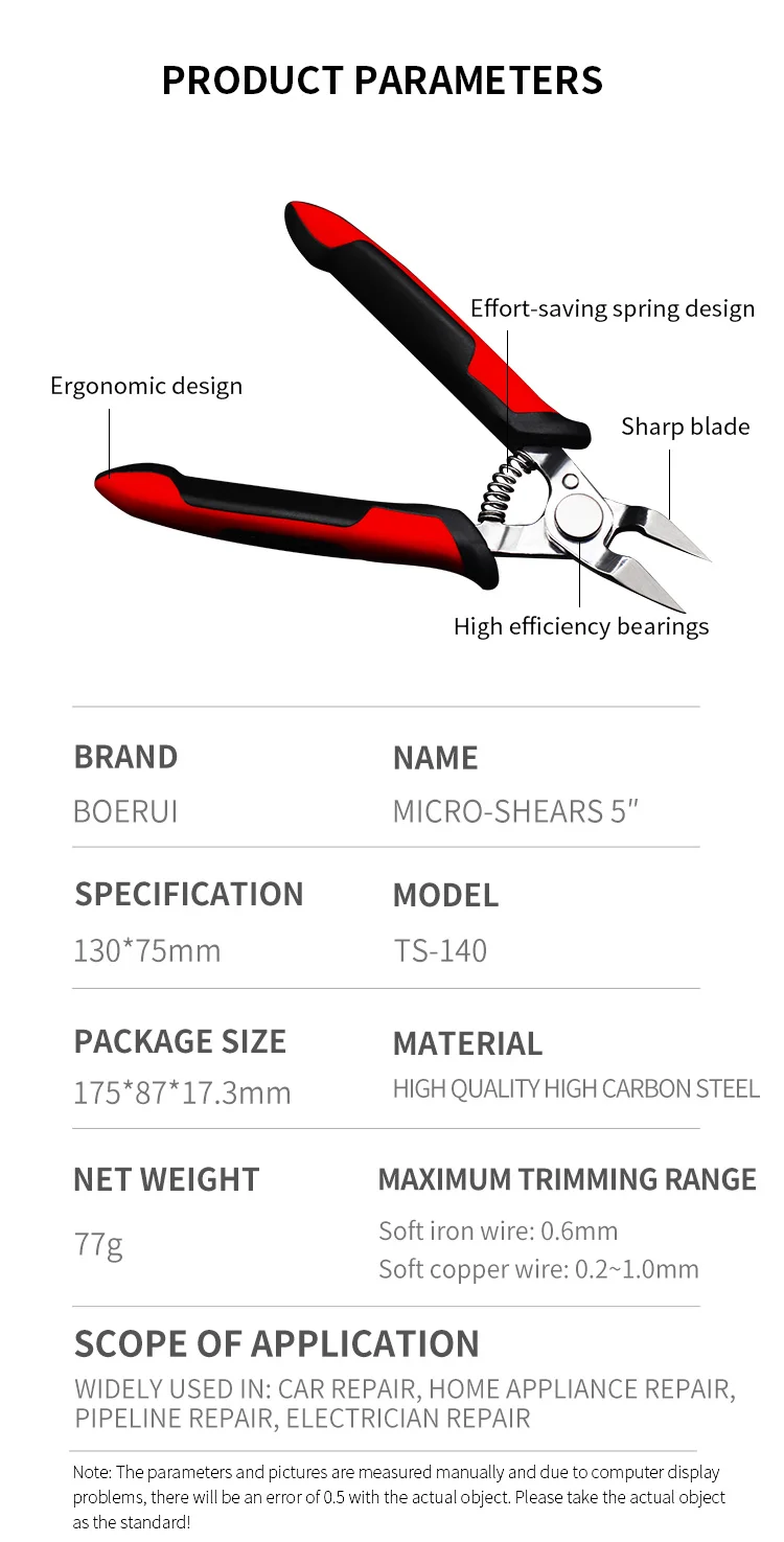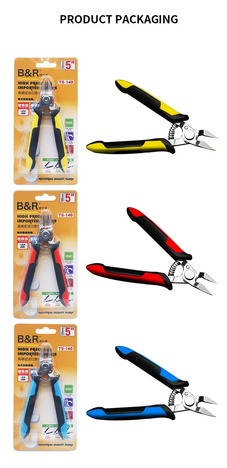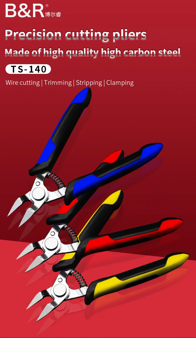 B&R TS-140 5 inch Electrical Pliers Precision Diagonal Cutting Pliers for Wire Cable Cutter High Hardness Nipper Hand Repair