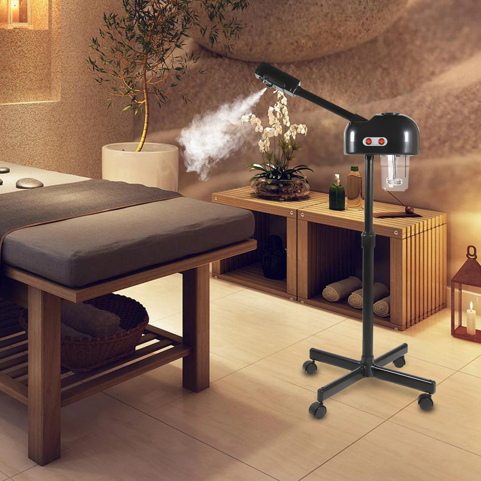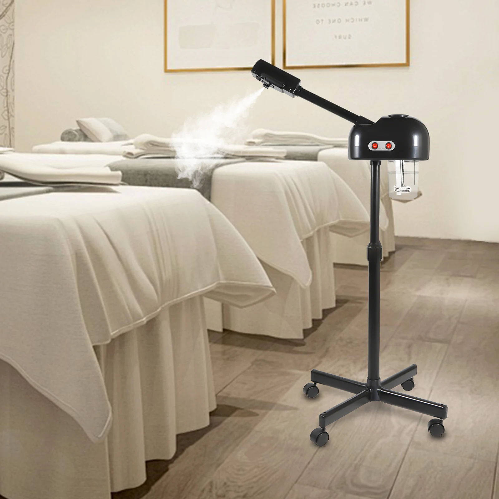 Facial Steamer Floor Standing Skin Care Equipment 800W Black for Salon Beauty and SPA Shop Beauty Skin 360° Swivel Wheels