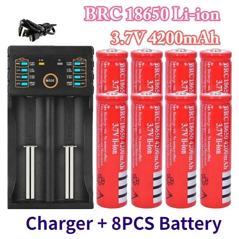 100% Original BRC 18650 4200 mAh lithium-ion 3.7 V Battery for Pen Laser Light Lantern + Charger