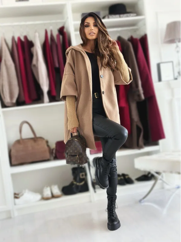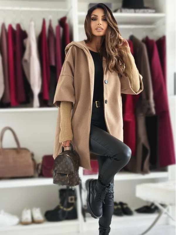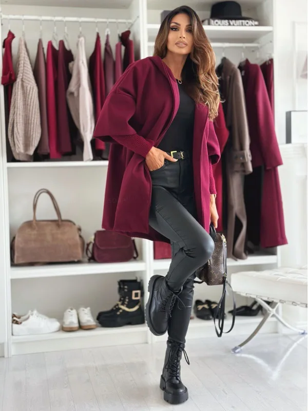 Autumn And Winter Fashionable Solid Color Loose Women's Hooded Woolen Coat For Women