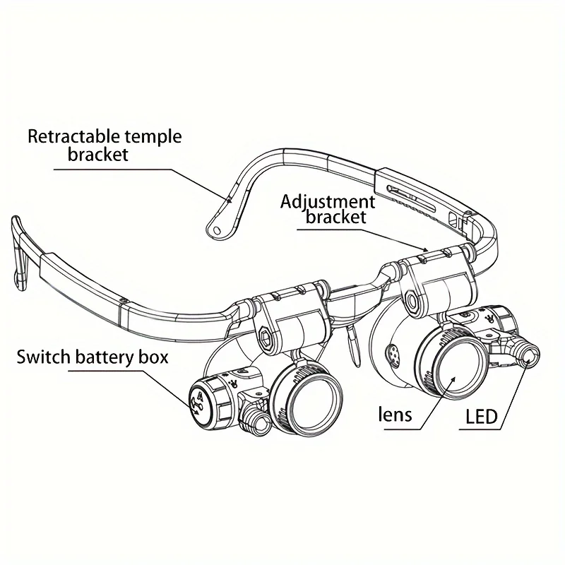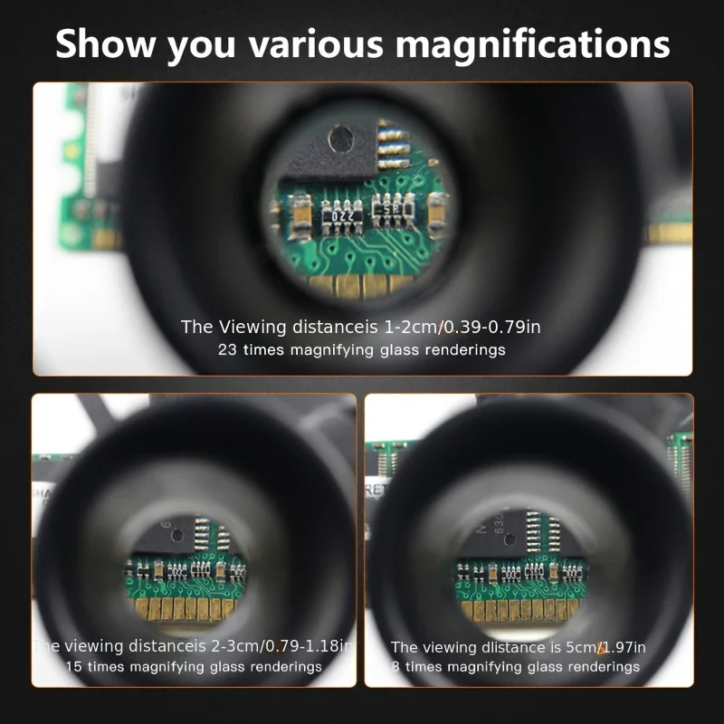 2LED headmounted lighting microlens with maintenance LED lamp magnifying glass, magnification 8x, 15x, 23x
