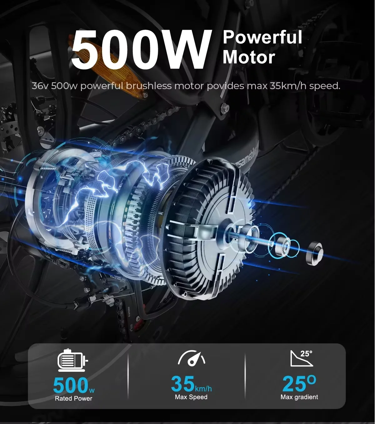 SAMEBIKE E-bike 500W Powerful Motor 36V13AH Battery Folding Electric Bike Alluminum Alloy 20*4.0 Inch Fat Electric bike