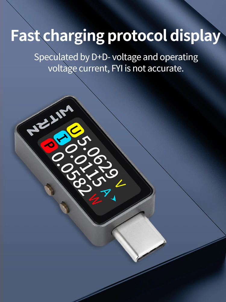 4. Fast charging protocol display: inferred by D+D- voltage and working voltage and current, for reference only.