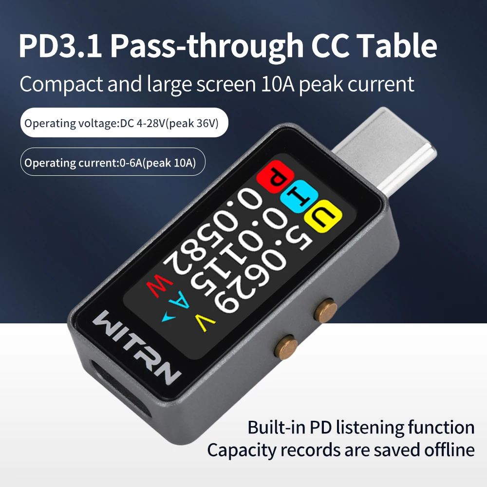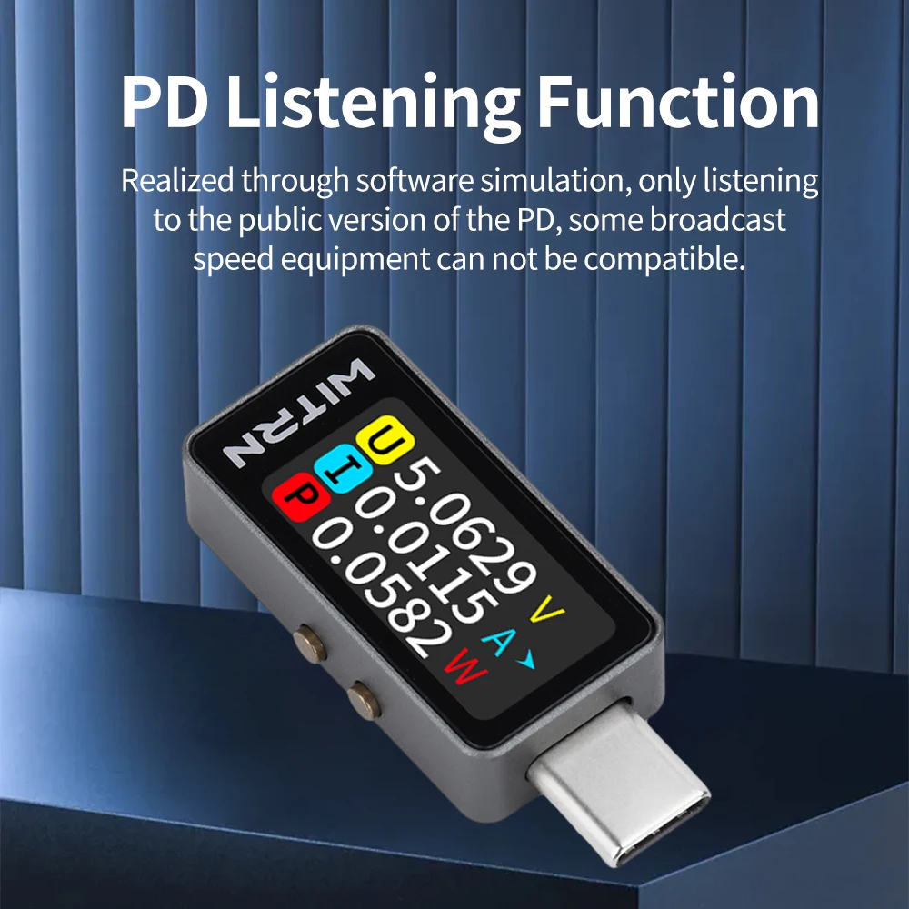 USB Type- C Tester with Real Time Voltages and Current Readout for Battery Performances Analysis for Electrician Tool