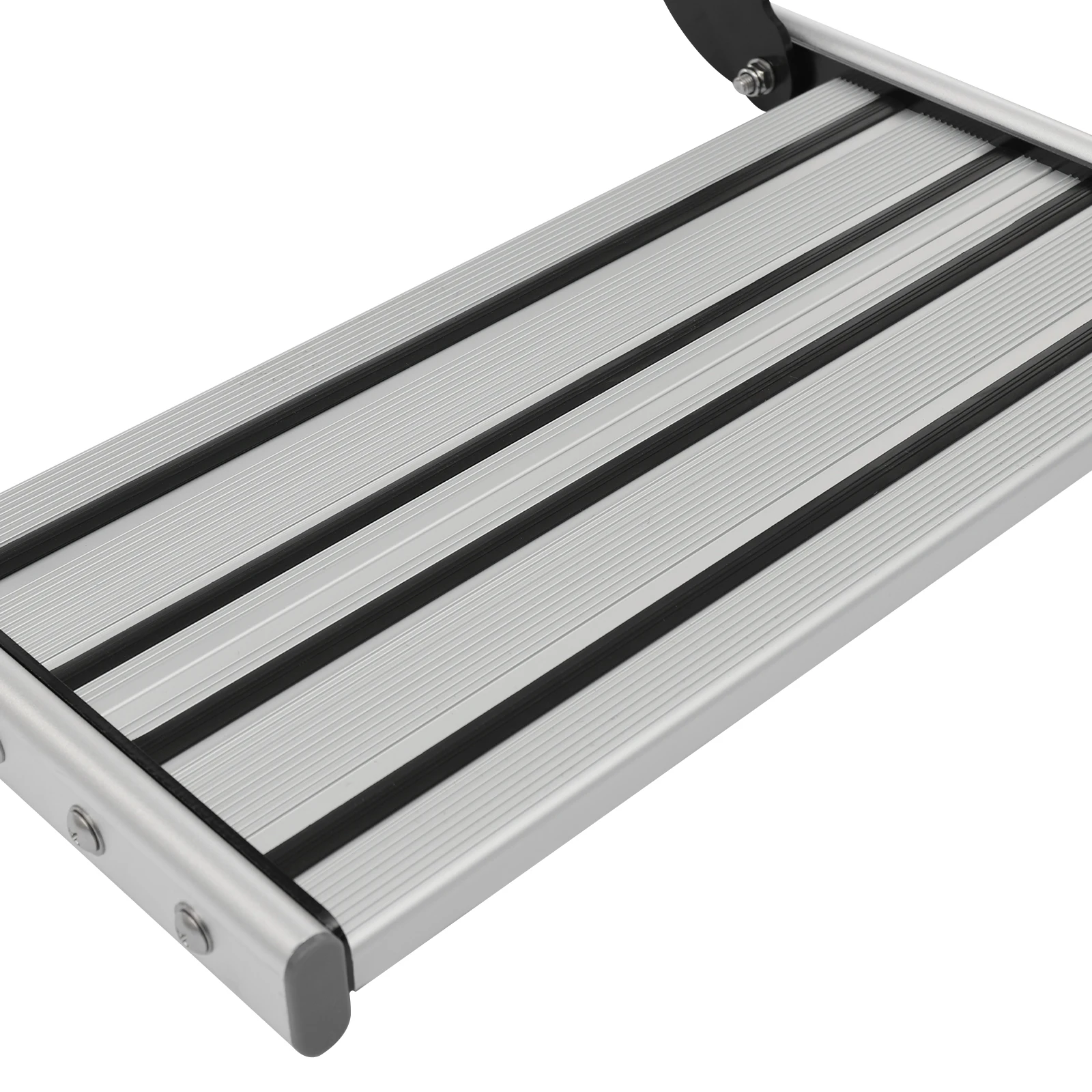 This aluminum alloy single-tier folding RV step is specially designed for your RV life. It combines elegant design and practical function and comes with an LED light bar, improving your safety of getting on and off the car at night. The lightweight and sturdy aluminum alloy and non-slip rubber strip design ensure the durability of the product and effectively prevent you from slipping, making your every trip safe and convenient.