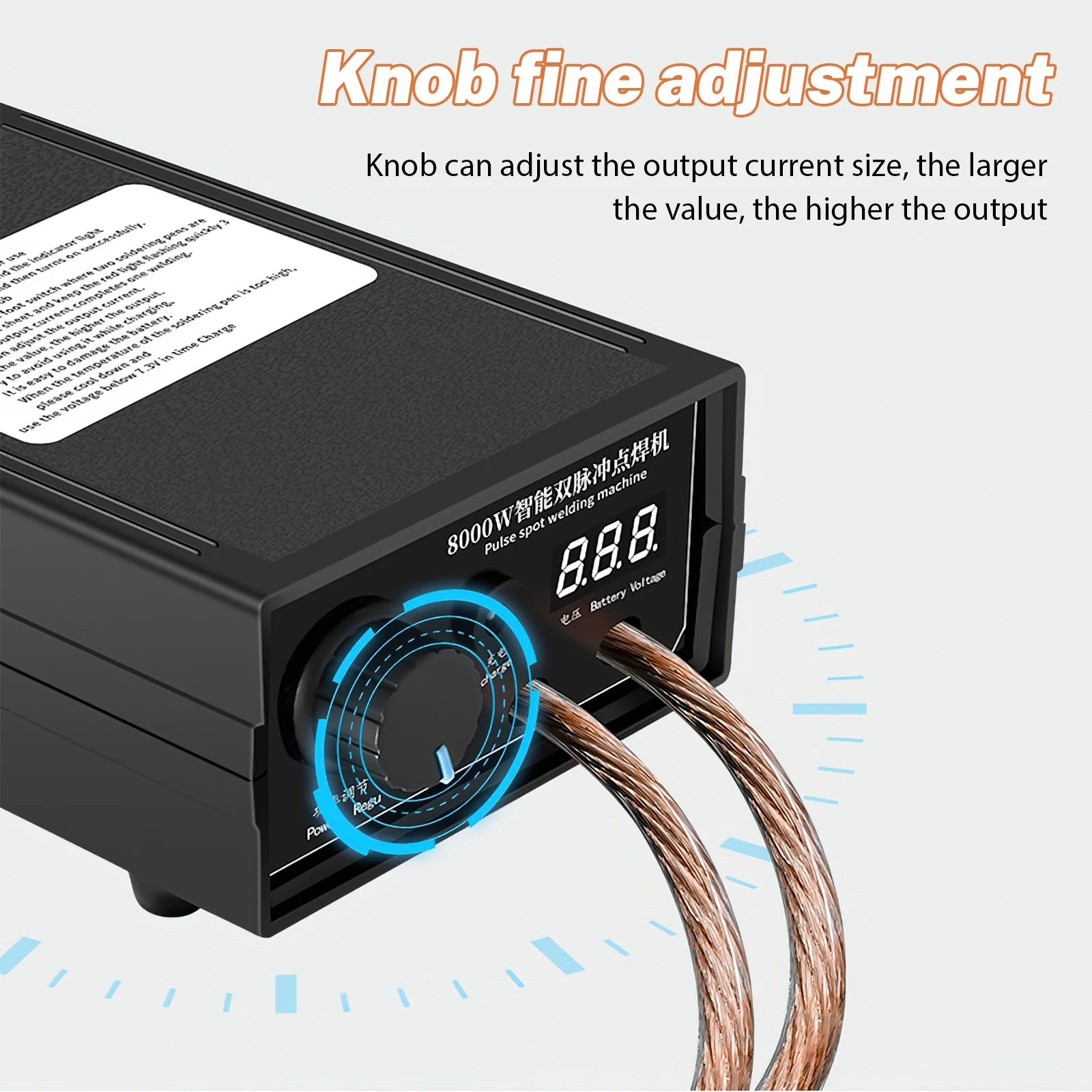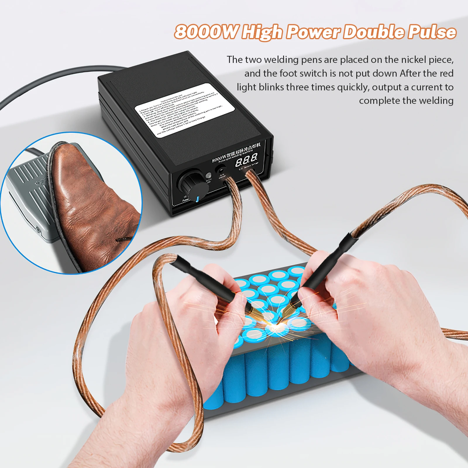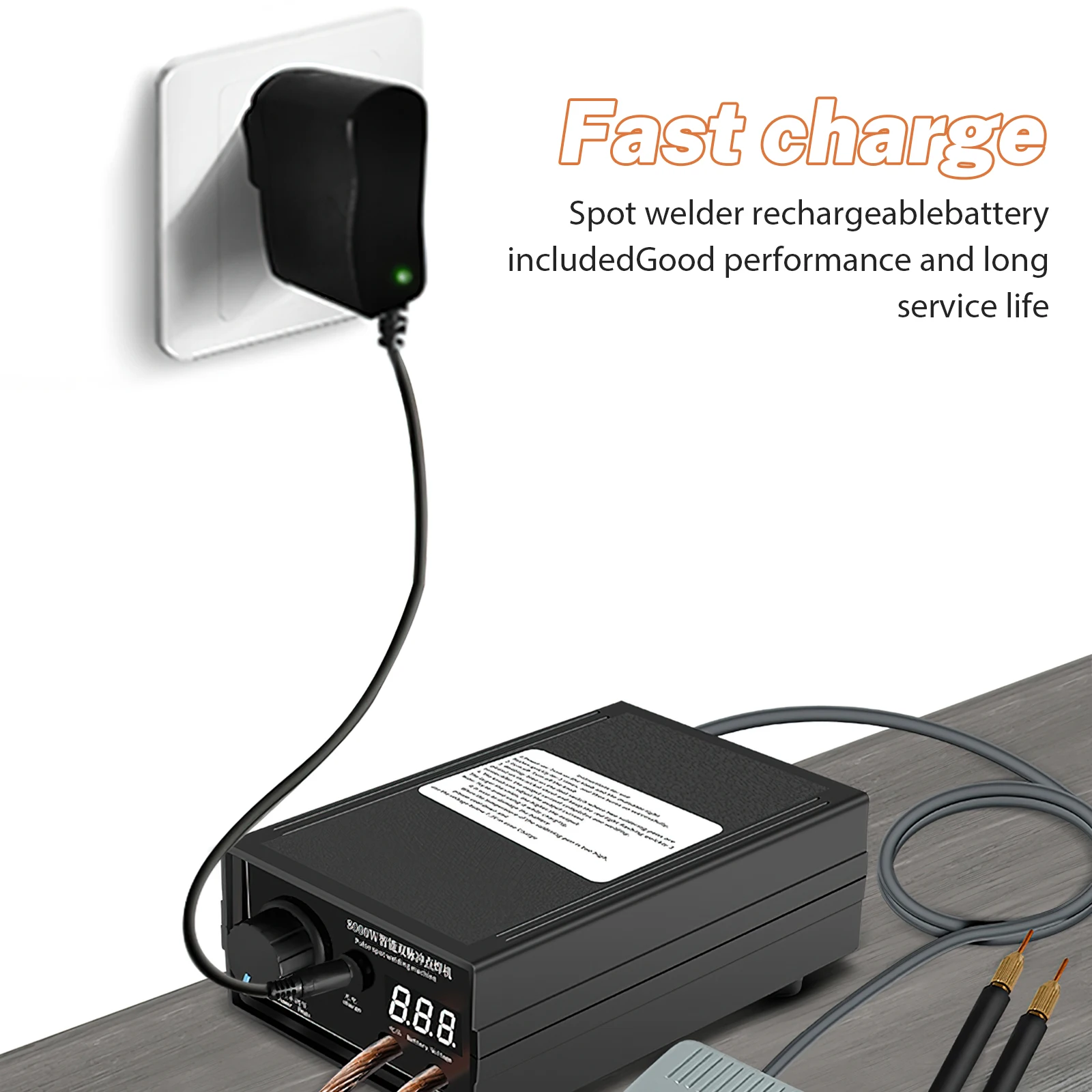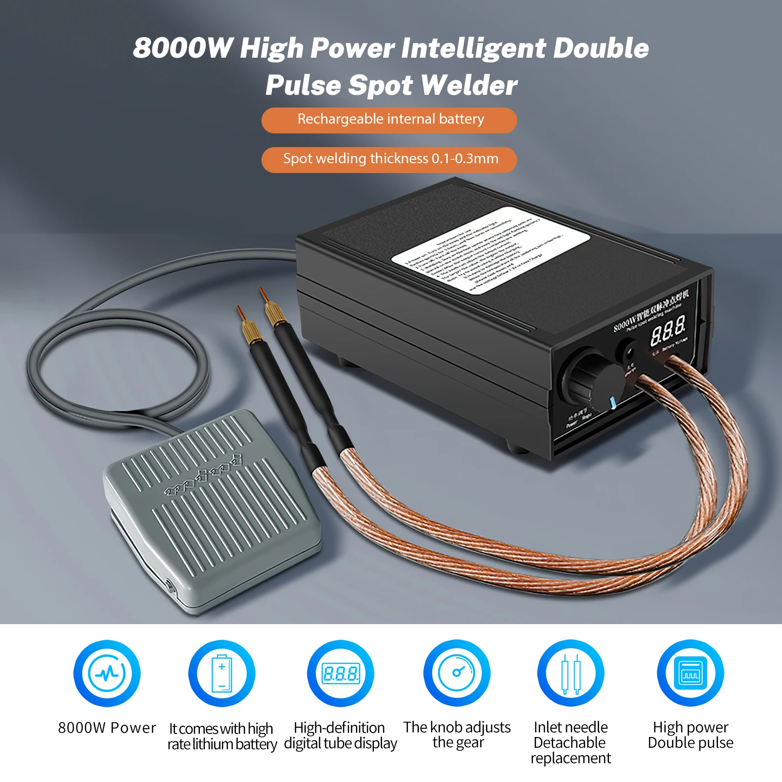 The 8000W high-power smart twin pulse spot welding machine is equipped with a rechargeable battery, which has good performance and long service life.