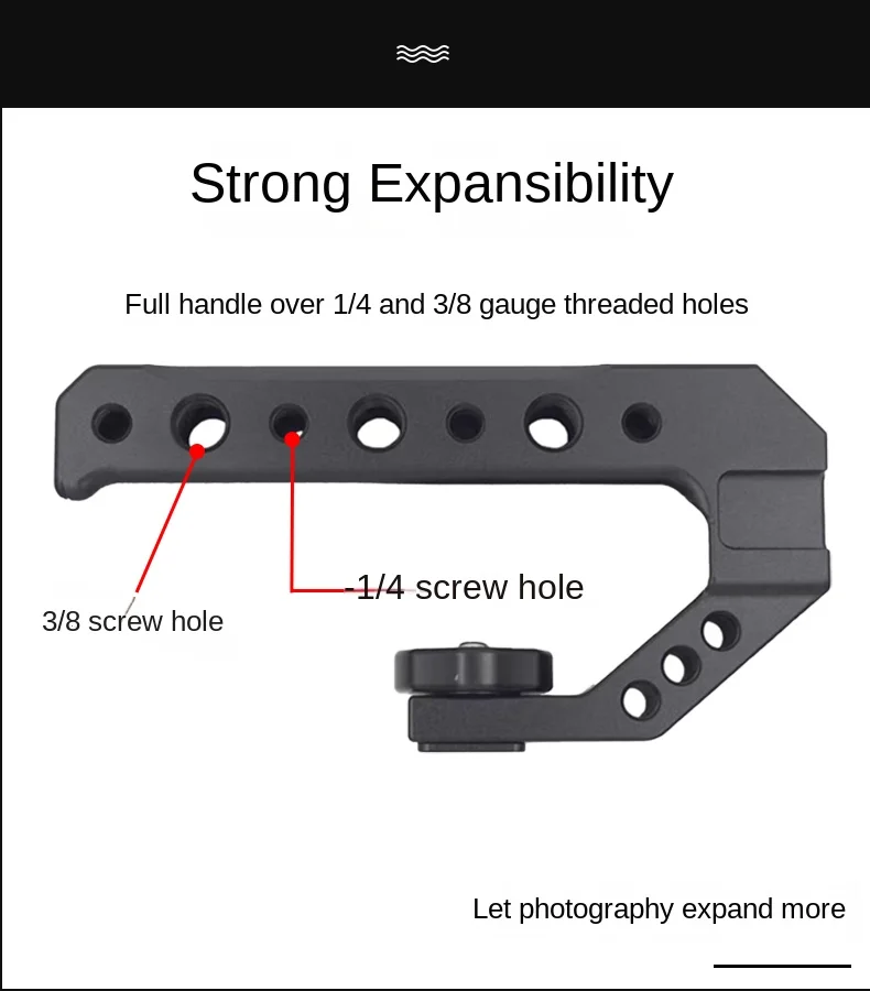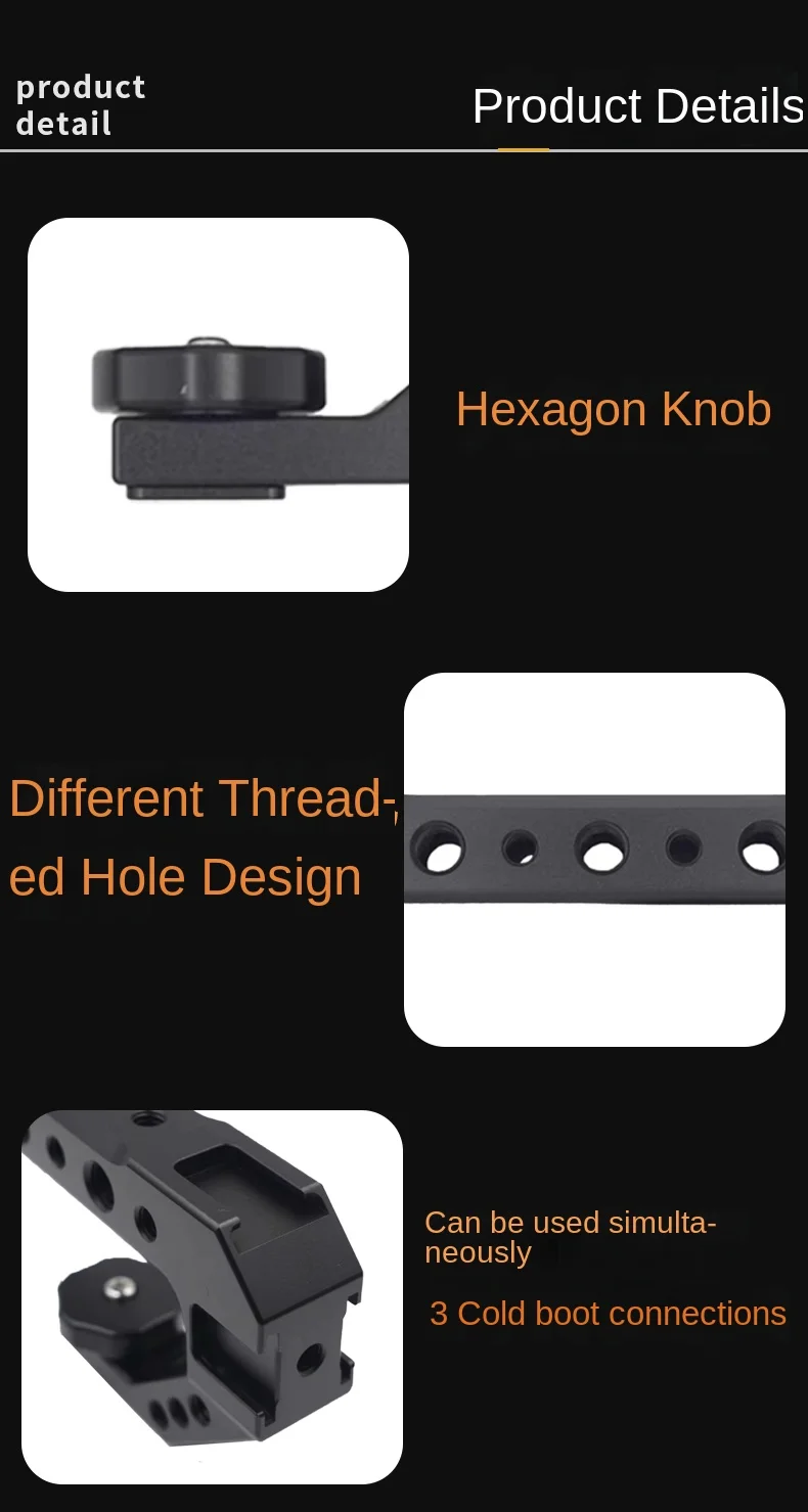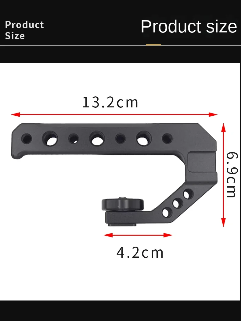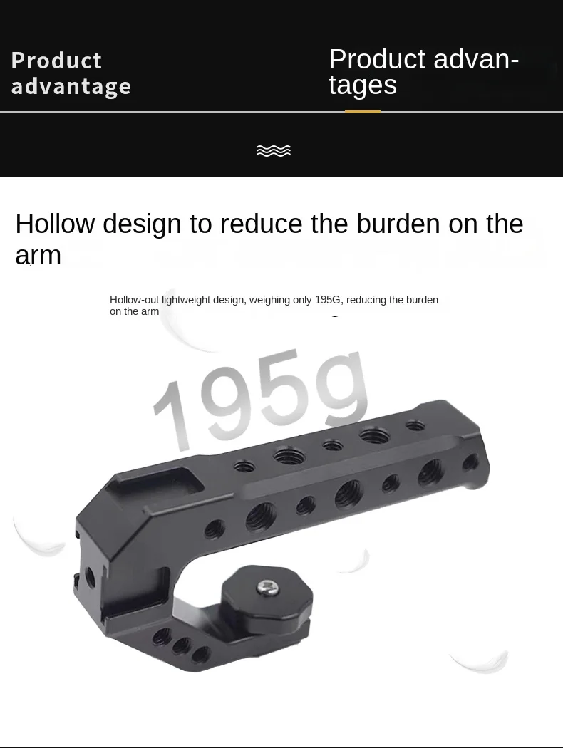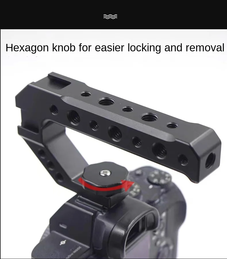 1. Premium Material: This camera top handle is made of premium aluminum alloy material, which is sturdy and wear resistant, more durable and lasts longer.