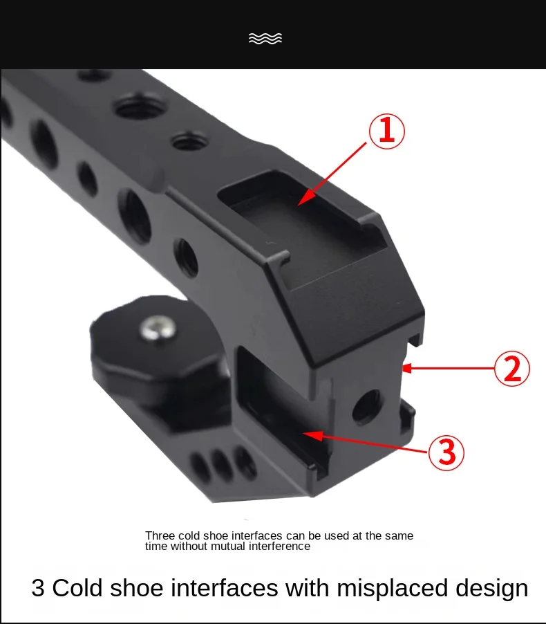4. Multiple Screw Ports: Multiple 1/4in, 3/8in screw ports, multiple cold shoe ports, it is more convenient to expand external connections, more compatible and innovative, and more favorable for shooting out.