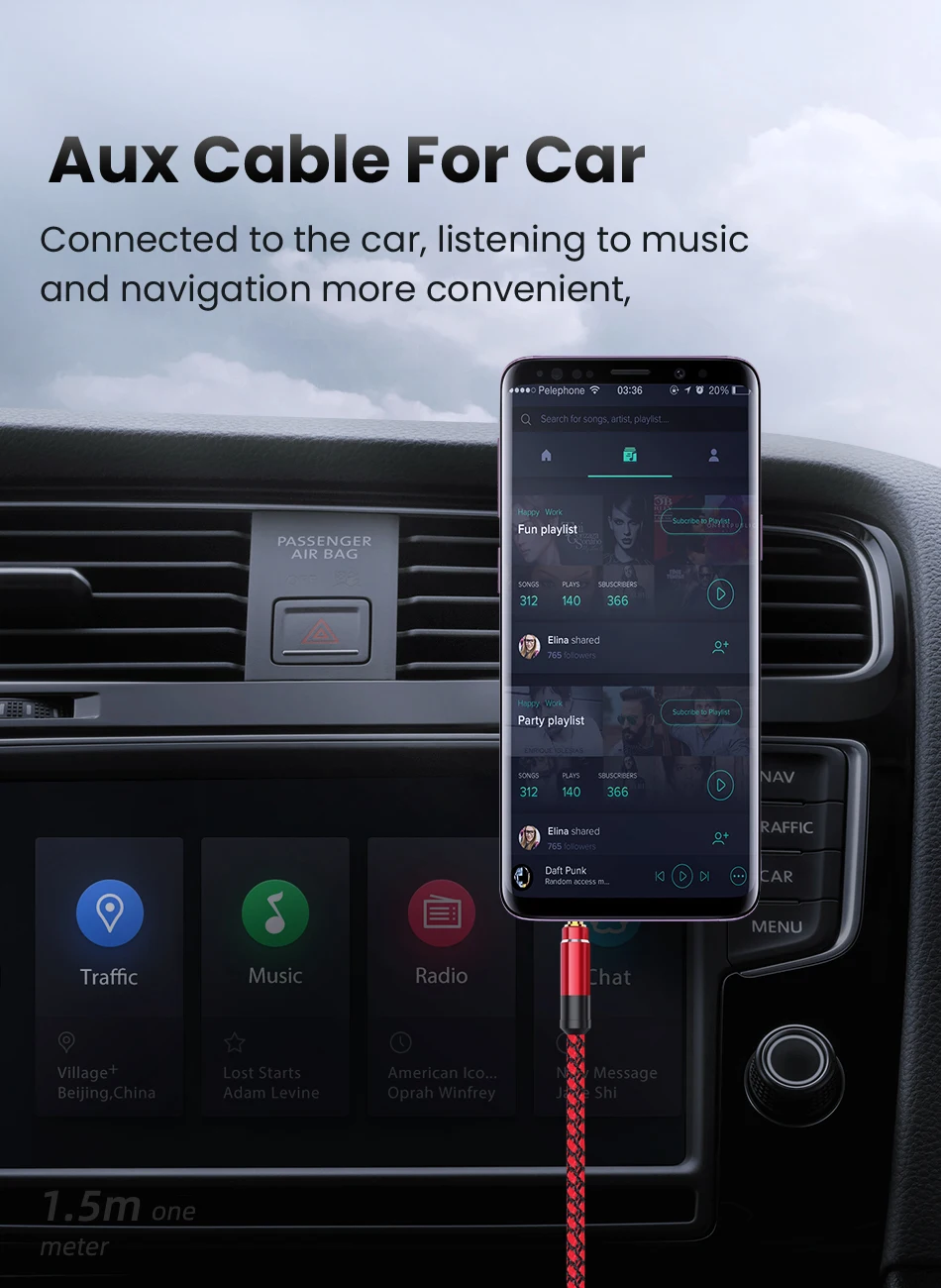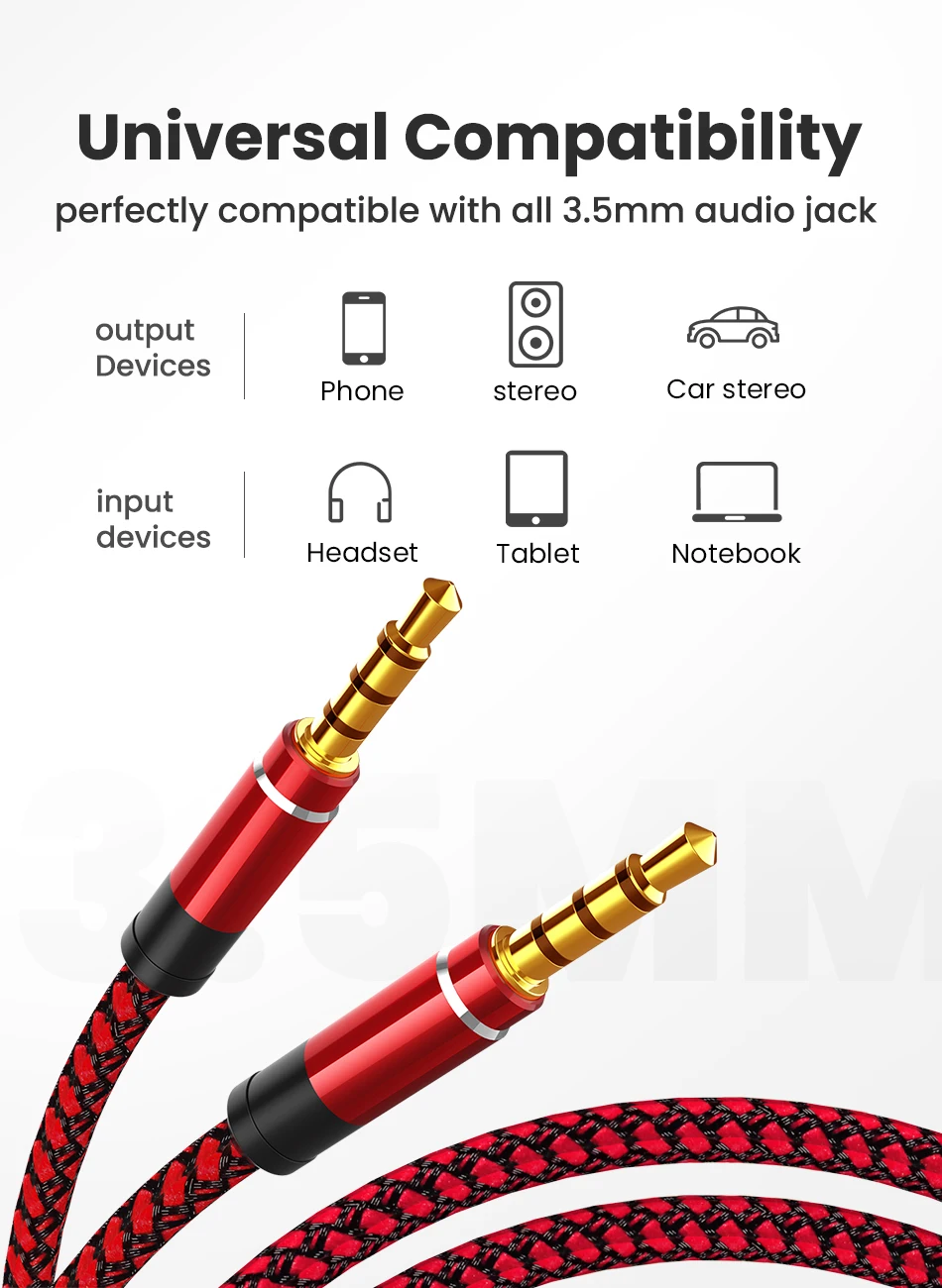 NNBILI 3.5mm Audio 1.5M Jack Cable Nylon Braid 3.5mm Car AUX Cable Headphone Extension Code for Phone MP3 Car Headset Speaker