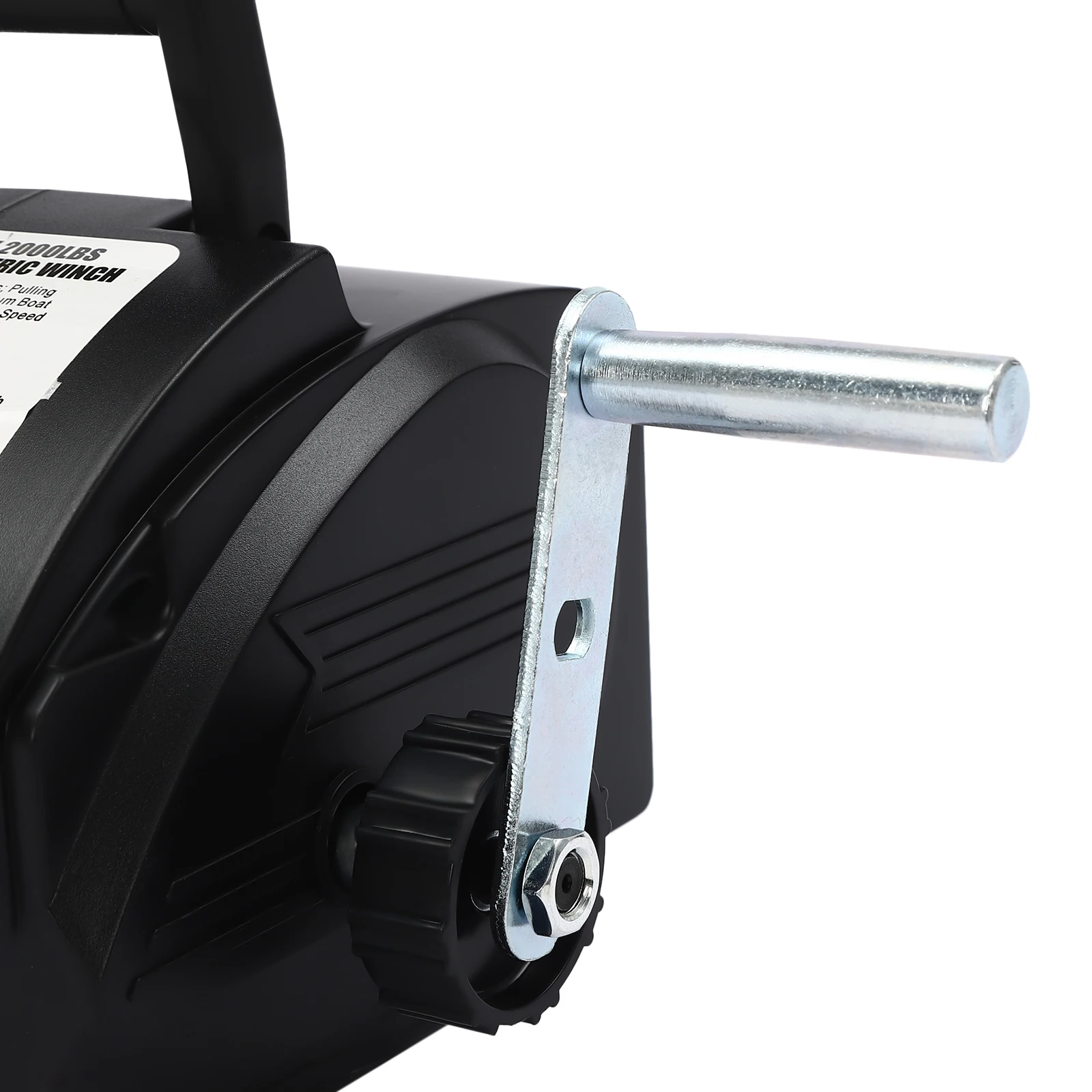 This 12V electric winch boasts 2000 lbs pulling force, 5000 lbs floating pulling force and 6000lbs rolling force, which allows you to easily handle a variety of jobs that require a winch. It is made of high-quality steel and ABS, which boast high hardness and corrosion resistance and can adapt to the harsh marine environment. It boasts a 9.84ft long wire control and a hand-cranking control, ensuring that the winch can be used with or without electricity.