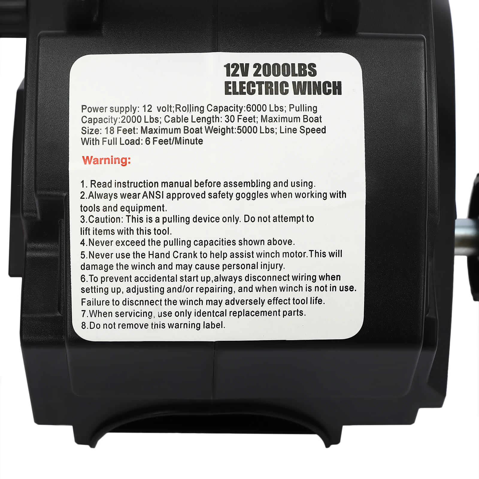 Powerful&Efficient: It boasts a 300W permanent magnet copper DC motor, which features high efficiency and large strength, giving the winch 6000lbs rolling force, 5000lbs floating pull force, and 2000lbs rated pull force for pulling your boat or car.