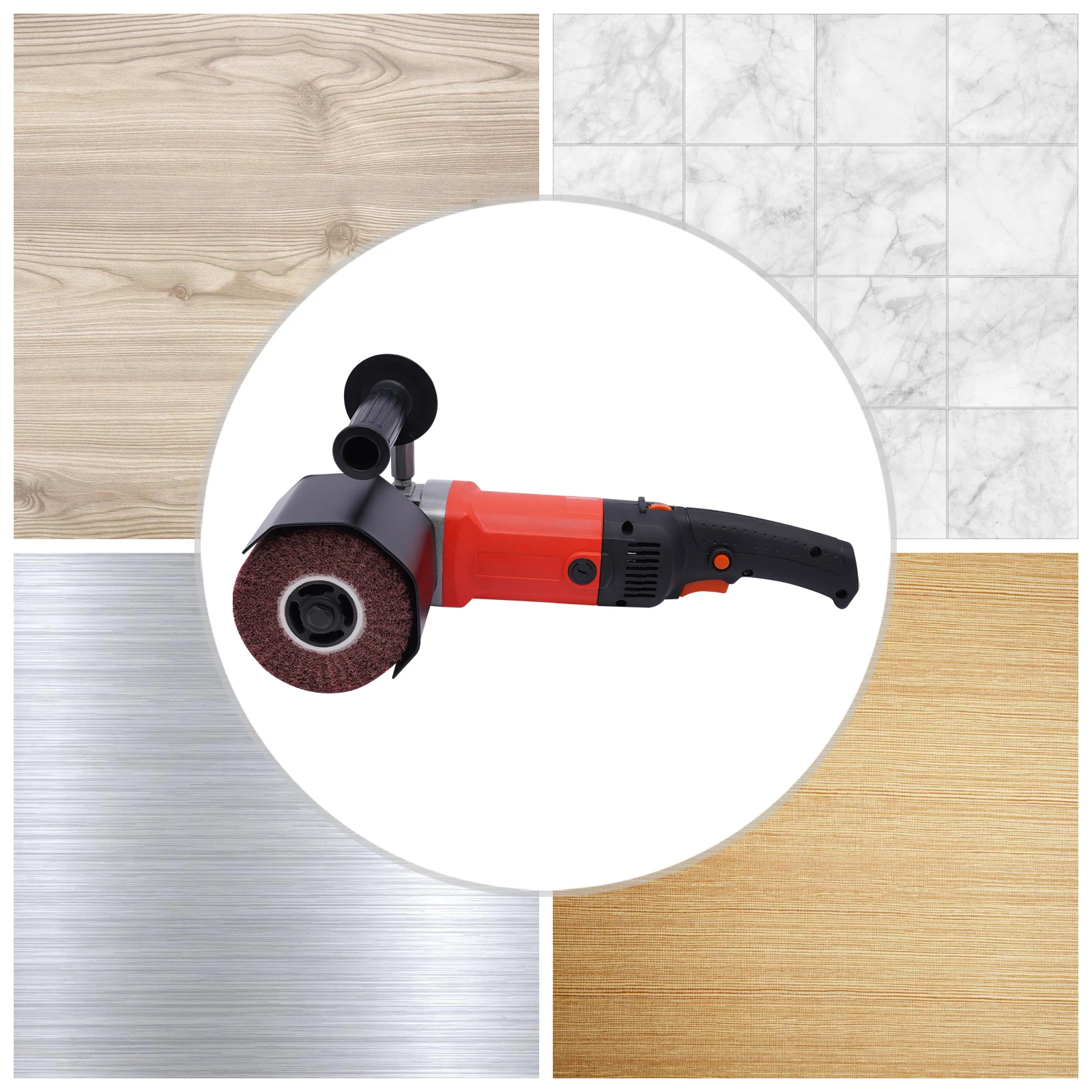 This product can be used for polishing, grinding, and texture processing, as well as cleaning dirty surfaces or removing paint residues. It can be widely used in households, automotive maintenance, workshops, factories, machinery manufacturing, and other places to process materials such as stainless steel, cast iron, aluminum, non-ferrous metals, plastics, etc