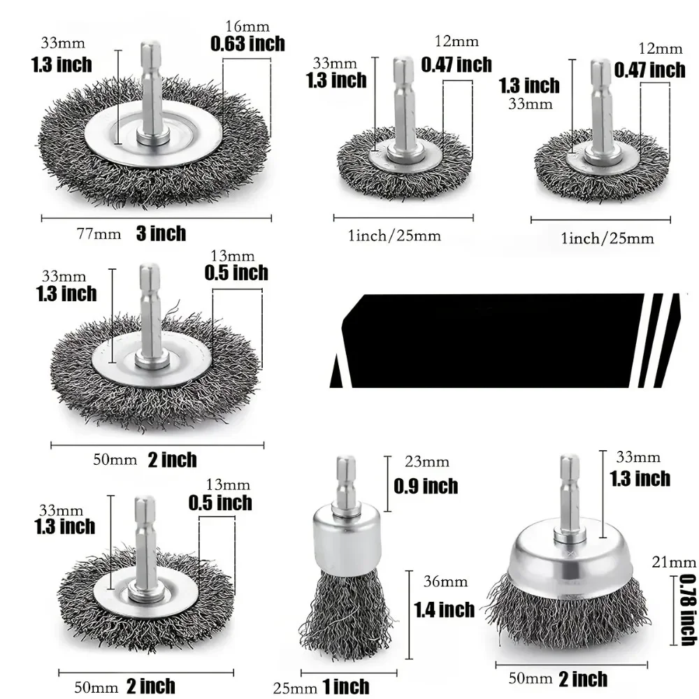 Wire Brush Wheel Cup Brush Set 10 Pack,Wire Brush for Drill 1/4 Inch Hex Shank 0.012 Inch Coarse Carbon Steel Crimped Wire Wheel