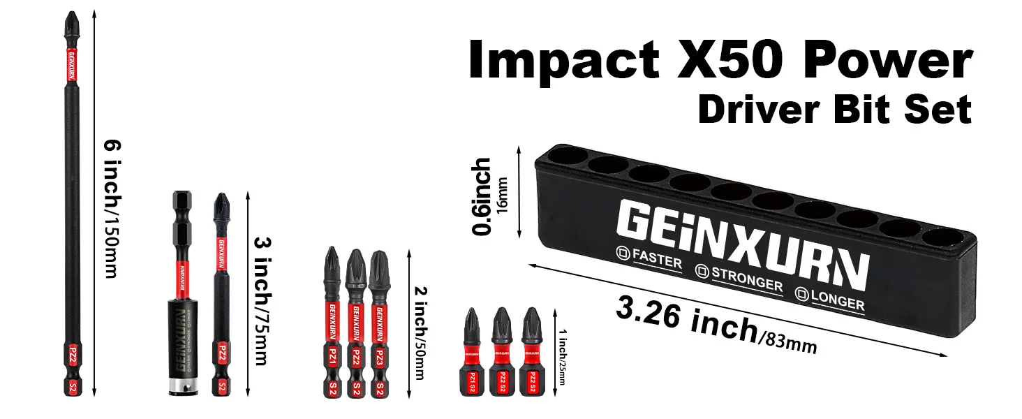 Geinxurn Pozidriv #1/#2/#3 Impact Tough Screwdriver Power Bit SetPozidriv #2 PZ2 Impact Tough Screwdriver Power Bit Set