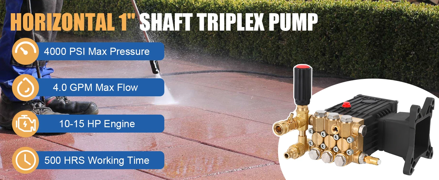 Pressure Washer Pump, 4000PSI 4.4GPM 1" Shaft Horizontal Triplex Plunger Power Washer Pump Replacement Pumps Direct Drive Pump