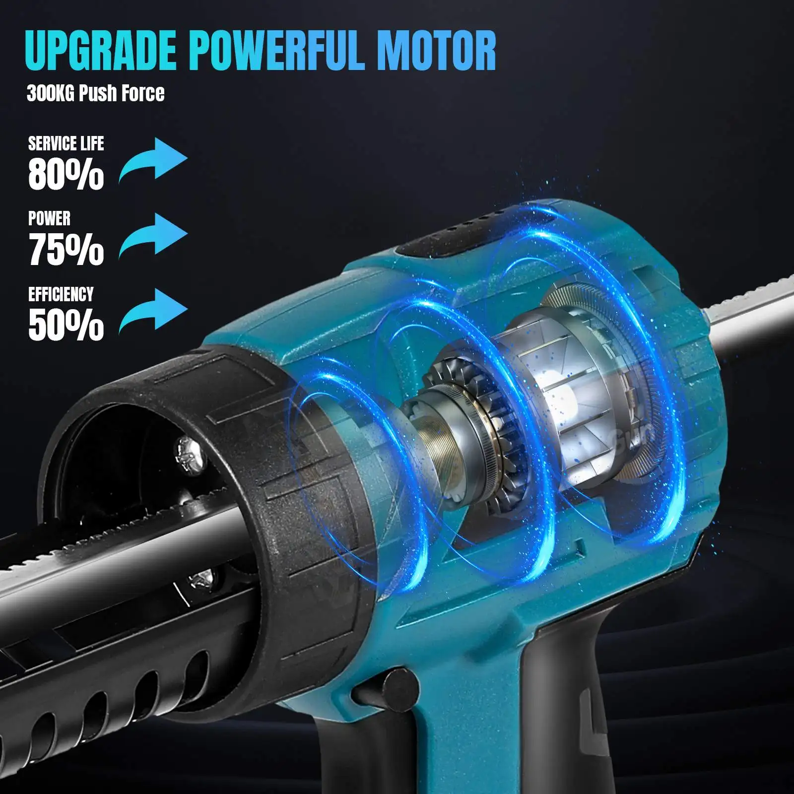 Save time and labor: The drip free sealing gun can provide 300KG of thrust to distribute adhesives and sealants. The locking side switch can be operated continuously without holding down the button all the time. This cordless grout gun does not have an automatic retraction function, which can avoid wasting unnecessary time.