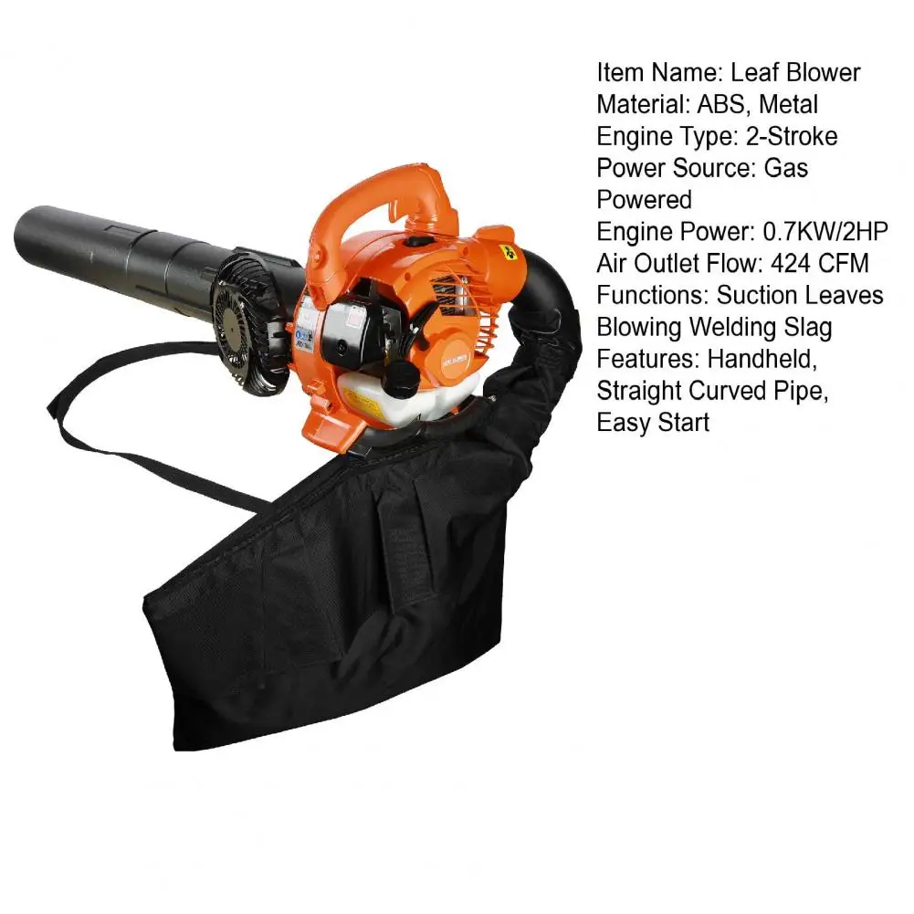 2 Stroke Handheld Leaf Blower, Gas Powered Leaf Blower Dual-Purpose (Blowing and Suction) Cleaner with Straight and Curved Blow Pipe, for Cleaning Leaf Road Snow, Orange