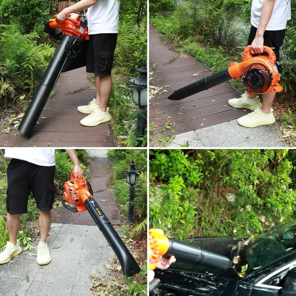 Widely Application: Dual-purpose of blowing and suction can blow away fallen leaves and also suck in dust. Equipped with straight and curved blow pipe, the handheld gas powered blower is versatile and has a wide range of applications, firefighting in mountains and forests, blowing snow in greenhouses, urban snow removal, road cleaning, sanitation cleaning, and leaf cleaning.