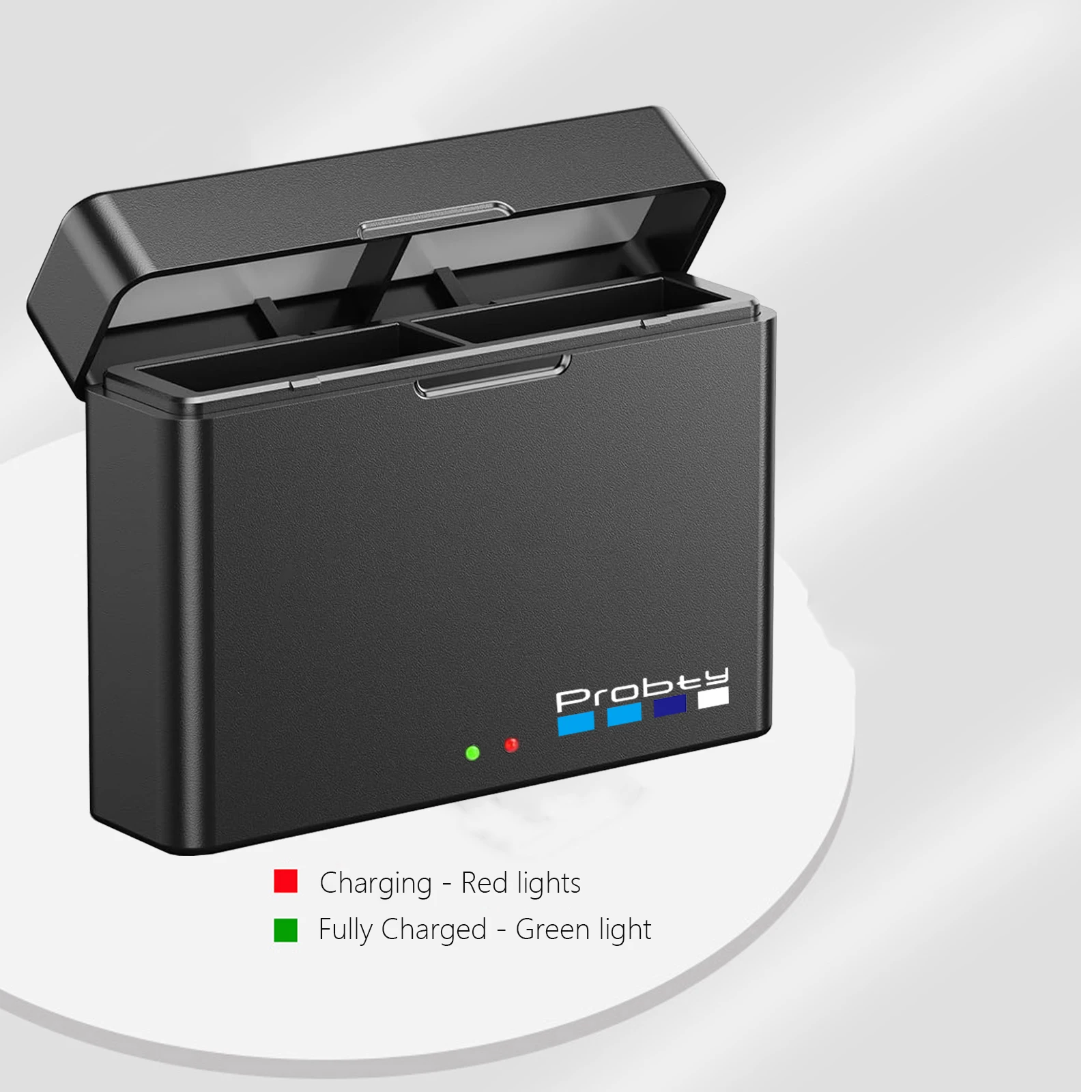 Red Light - charging in progress; Green Light - charging completed or no battery.