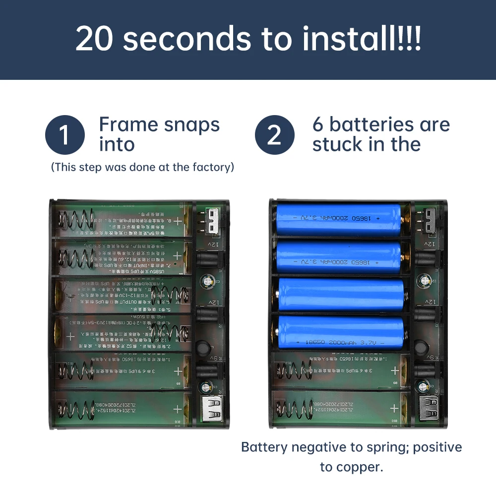 6 18650 Lithium Battery Welding-Free Diy Kit Dc Ups Power Supply Optical Modem Router Uninterruptible Power Supply 5V 9V 12V