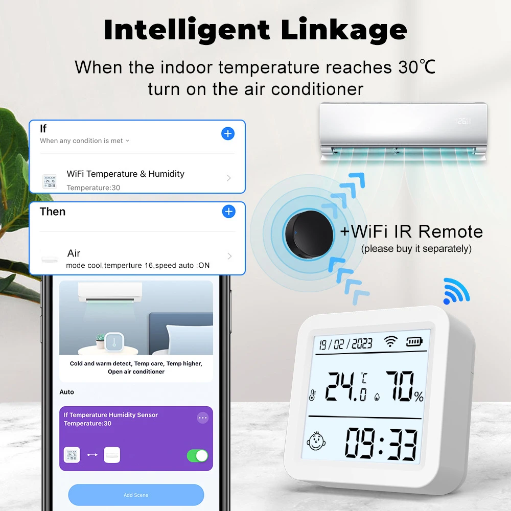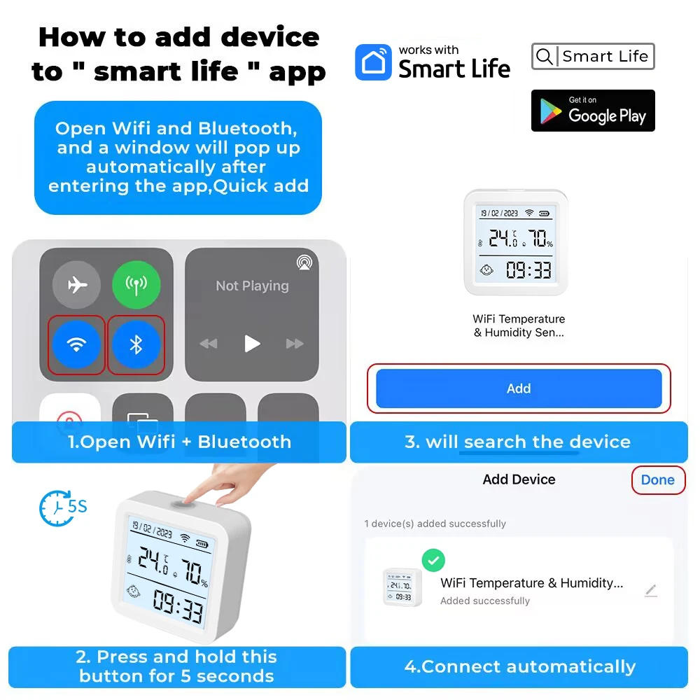 The sensor will report when the temperature and humidity. You can view the changes in the value on the APP or display screen.