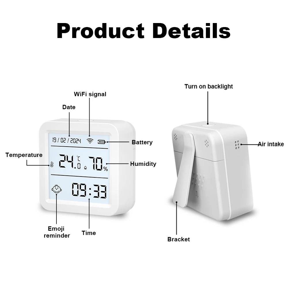 The sensor supports Amazon Alexa, Google Home Asistant. You can check the current temperature and humidity by voice.