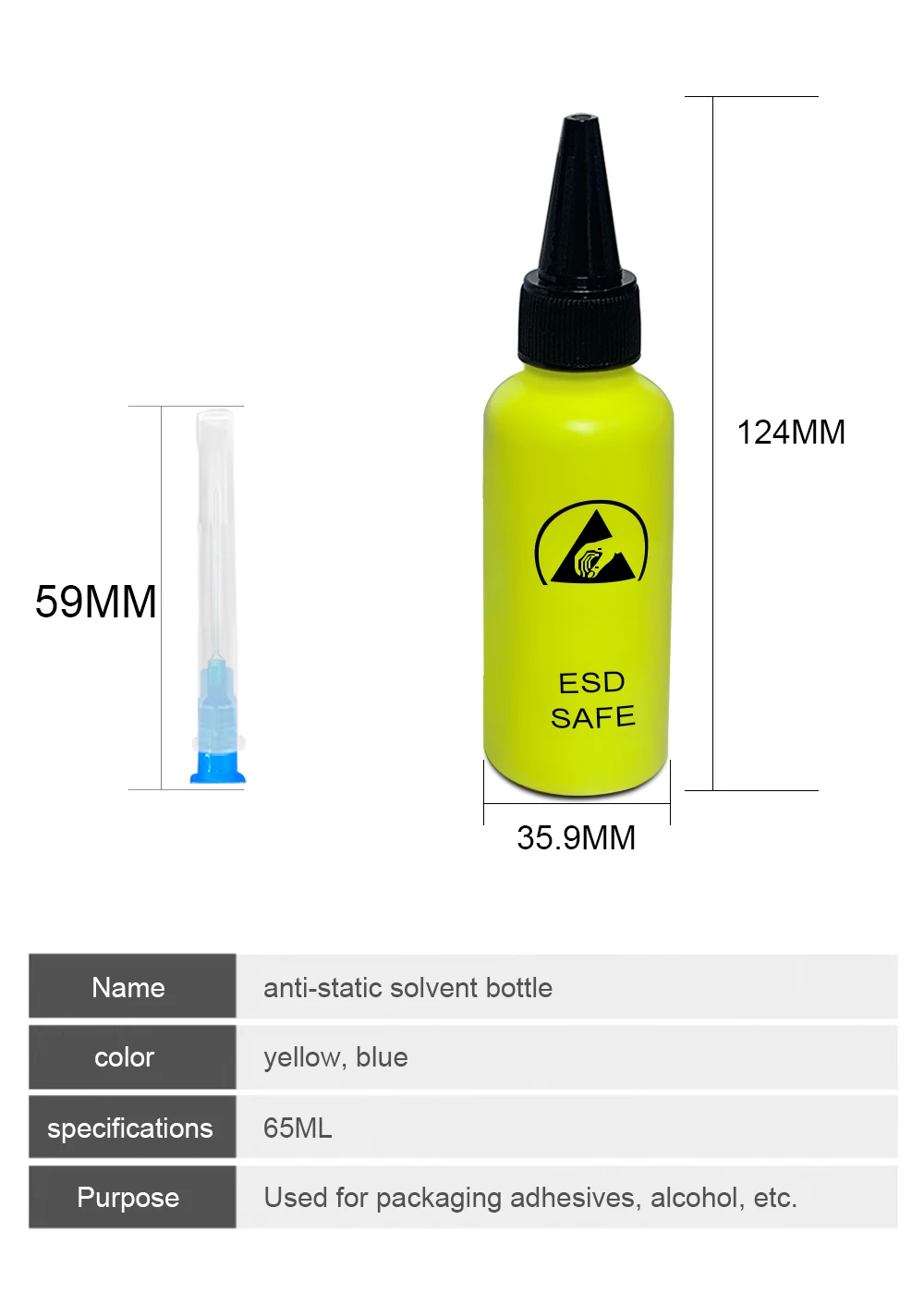 Alcohol bottle dispensing rosin washing plate water anti-static solvent bottle with needle 65ML leak-proof mobile phone repair