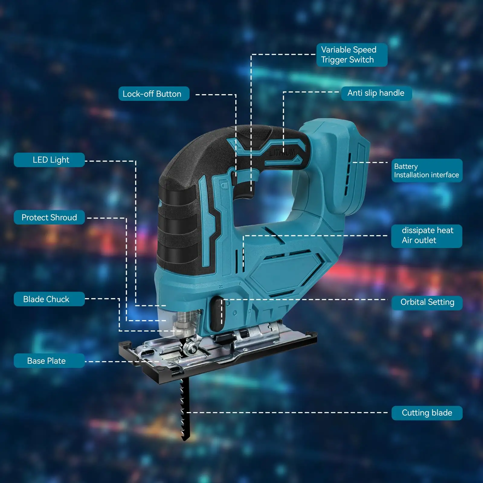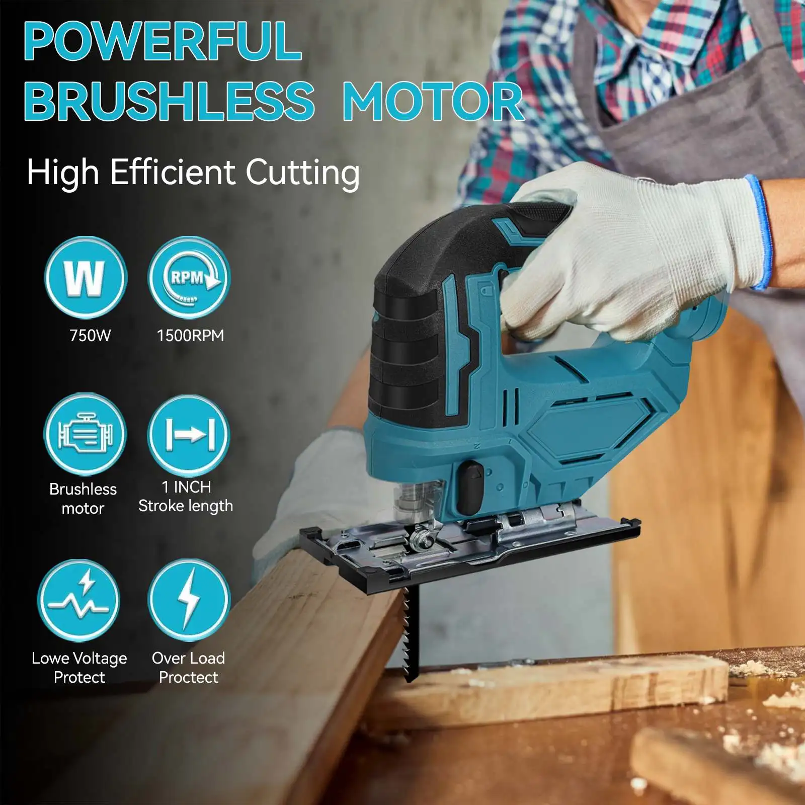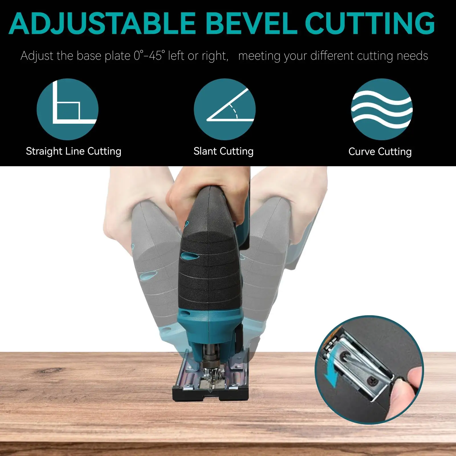 20V 65mm 2700RPM Cordless Jigsaw Electric Jig Saw Portable Multi-Function Woodworking Power Tool for Makita 18V Battery