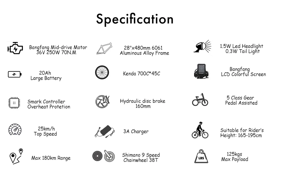 TT GO ZZ-28ST Electric Bike For Adults 250W BaFang Mid-Motor 36V20AH Battery 28" Tire City E Bike Hydraulic Disc Brake