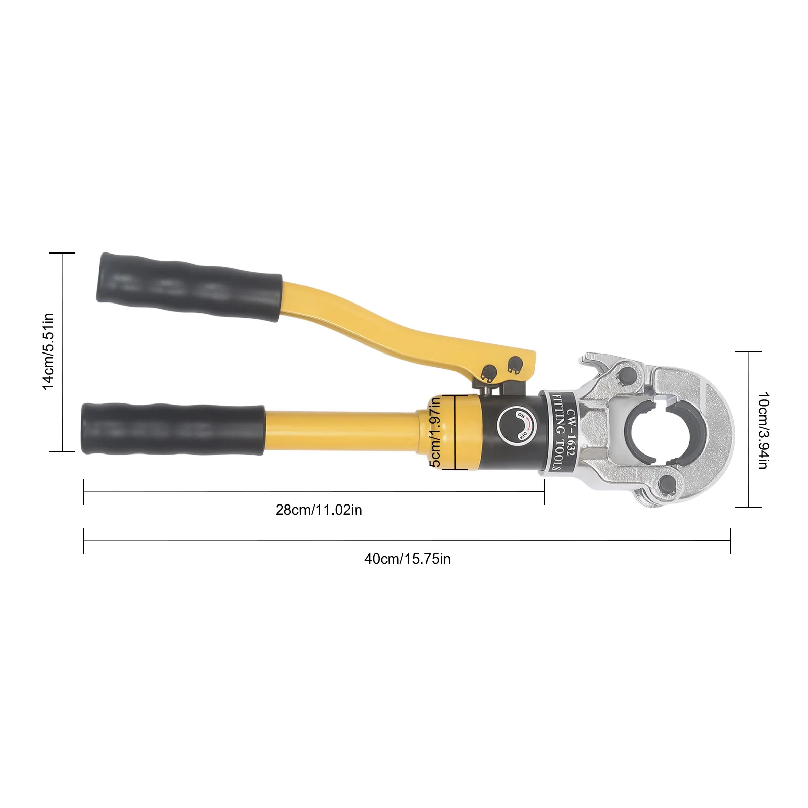 Wide Application: It is equipped with dies of 0.63, 0.79, 0.98, and 1.26 inches, which are convenient for crimping different types of pipes such as aluminum-plastic pipes, PEX pipes, and PB pipes.