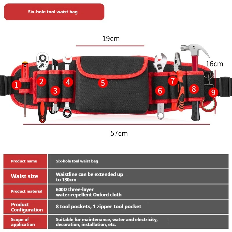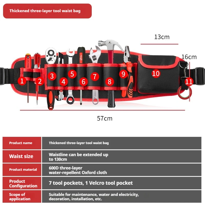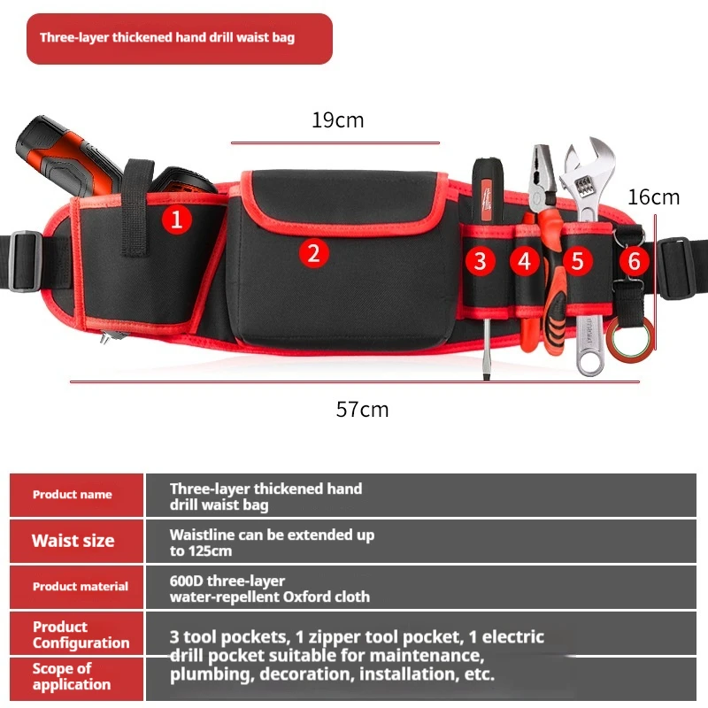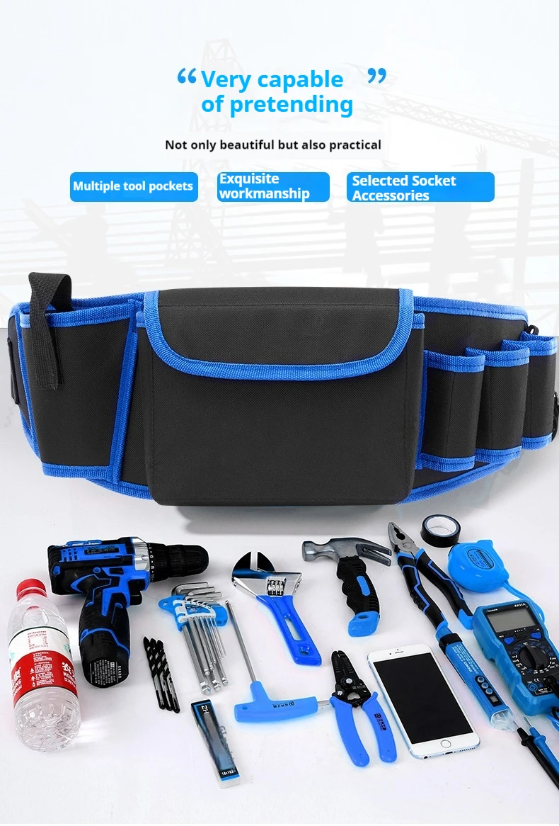 Multifunctional Oxford Cloth Thickened Electric Tool Pocket Maintenance Aerial Work for Electrician Carpenter Long Pocket Portab