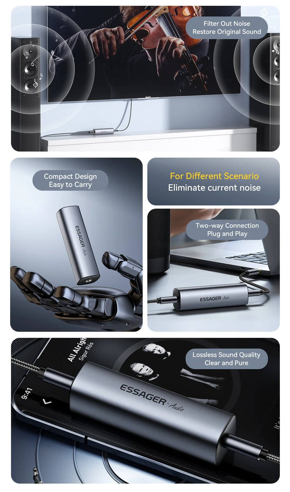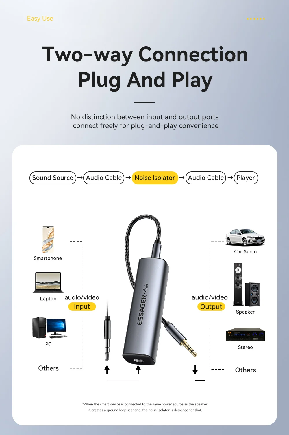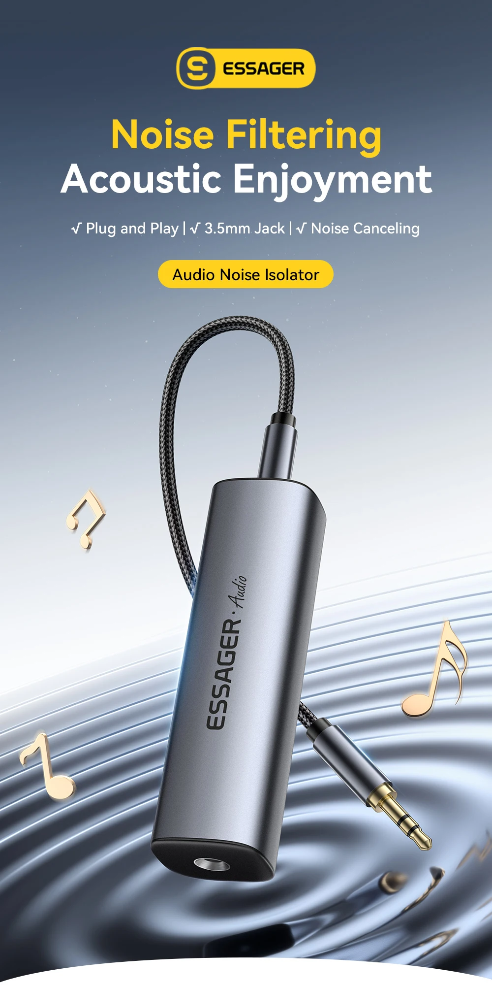 Essager 3.5mm Aux Cable Audio Noise Filter Ground Loop Noise Isolator Eliminate Cancelling for Home Stereo Car Audio System