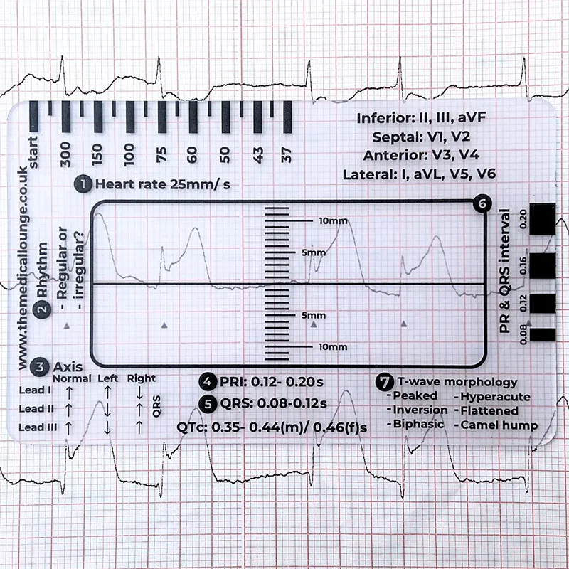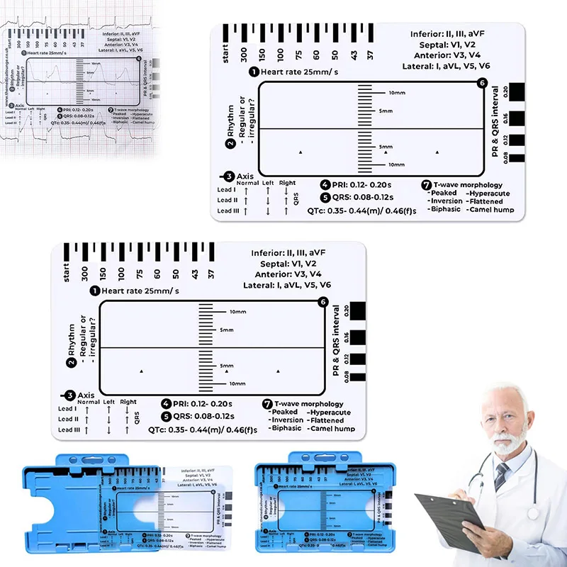 ECG/EKG Rhythm Pocket Card Pocket Card For ECG Self Measuring Ruler EGG Contiguous Leads Precision Measurement Household Tool