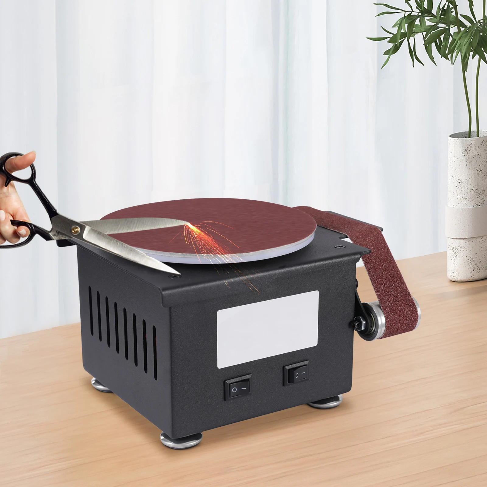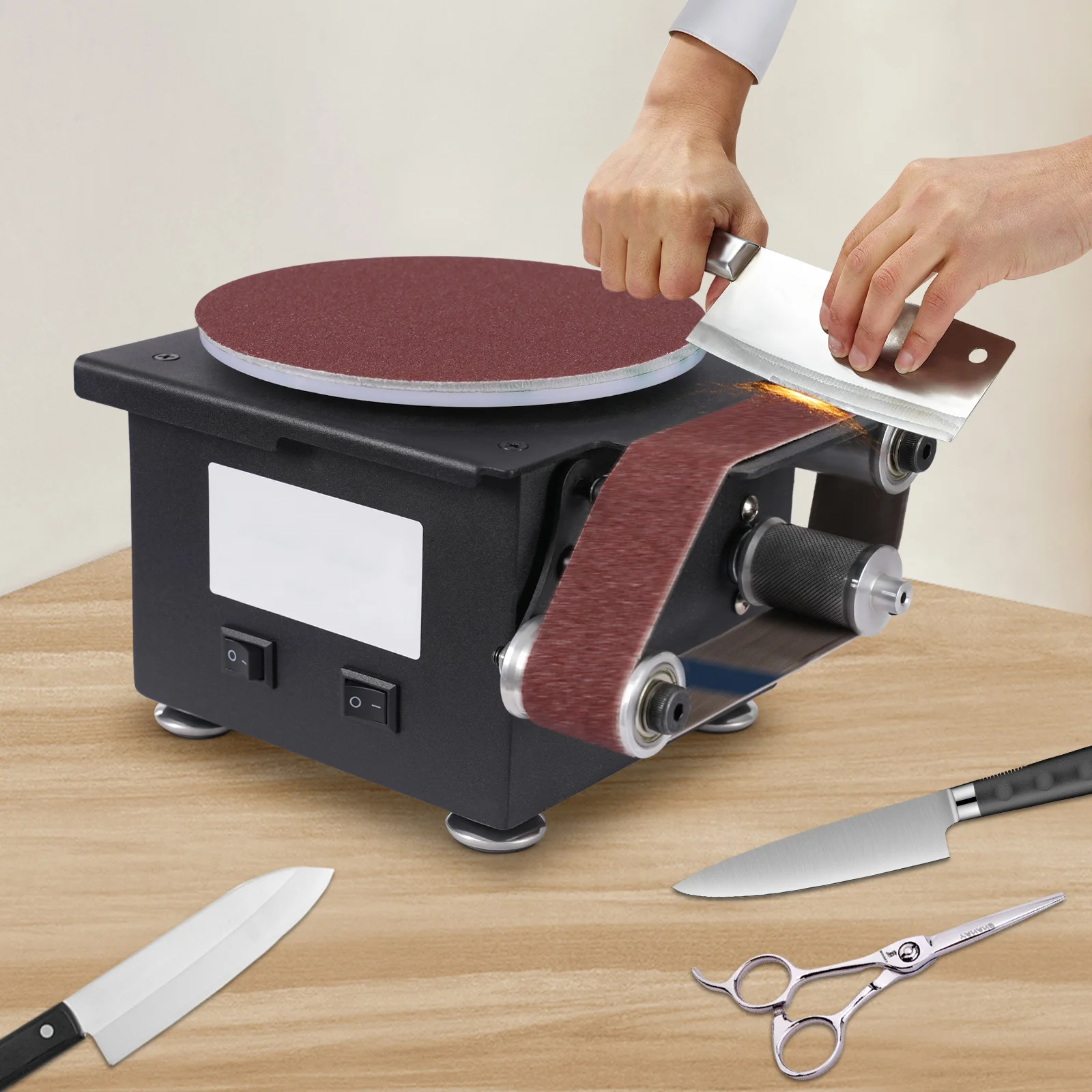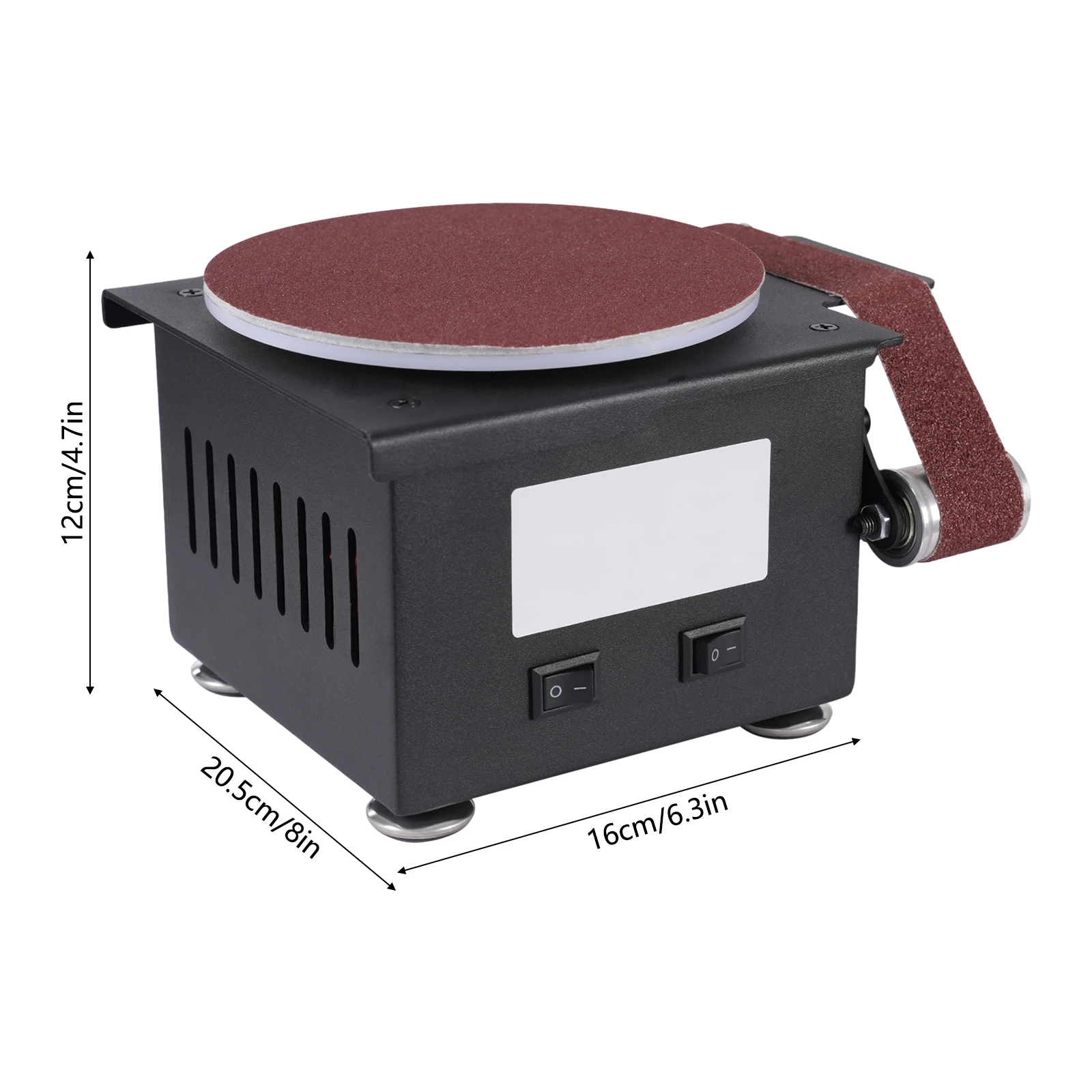Small Contour Sand Belt Sander 7 Gears Disc Sanding Machine 3 Sandpaper 10pcs Belt For Metal, Stone DIY Woodworking