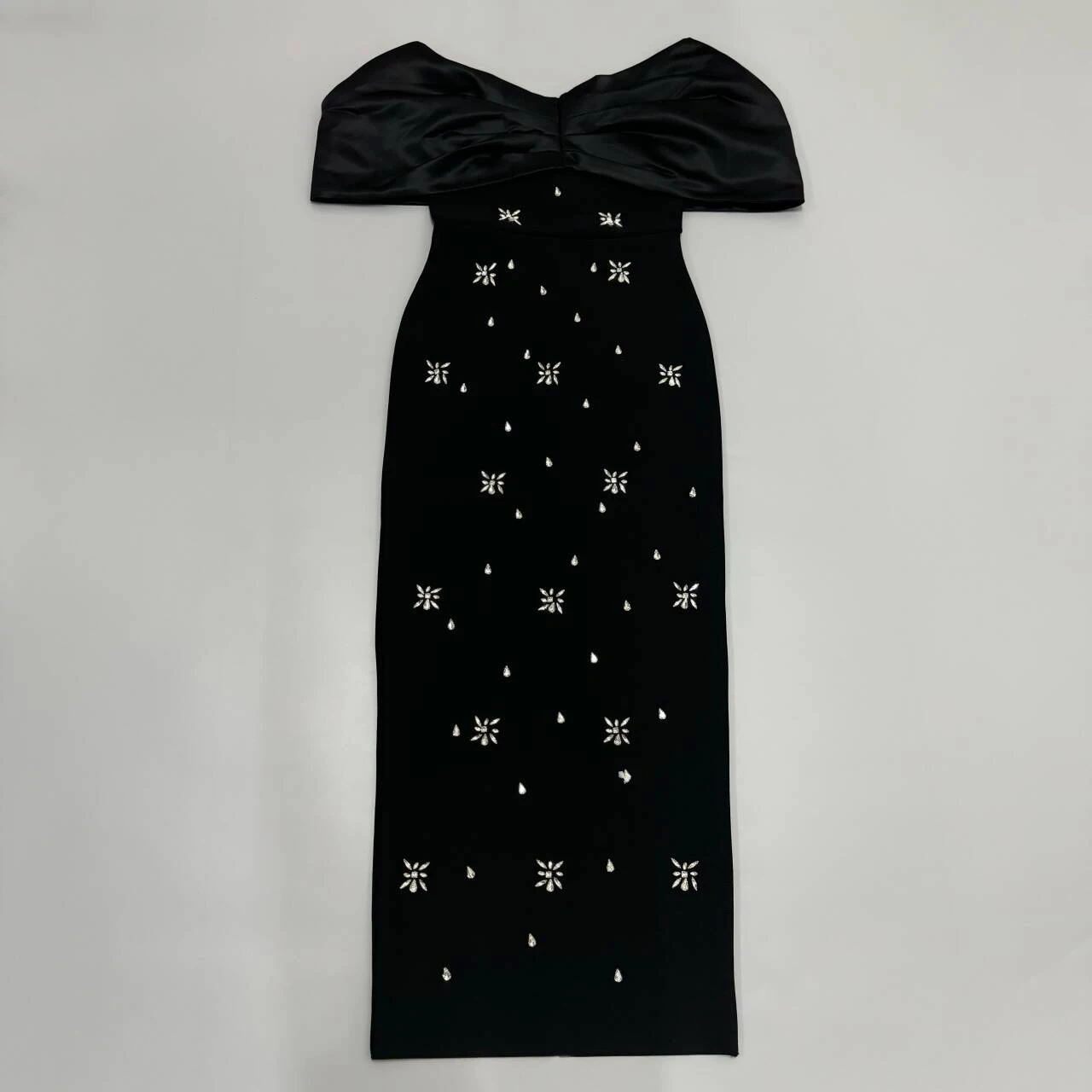 Women New Arrival Bandage Dress Sexy Beading Off The Shoulder Patchwork Clothes Club Party Celebrity Dresses
