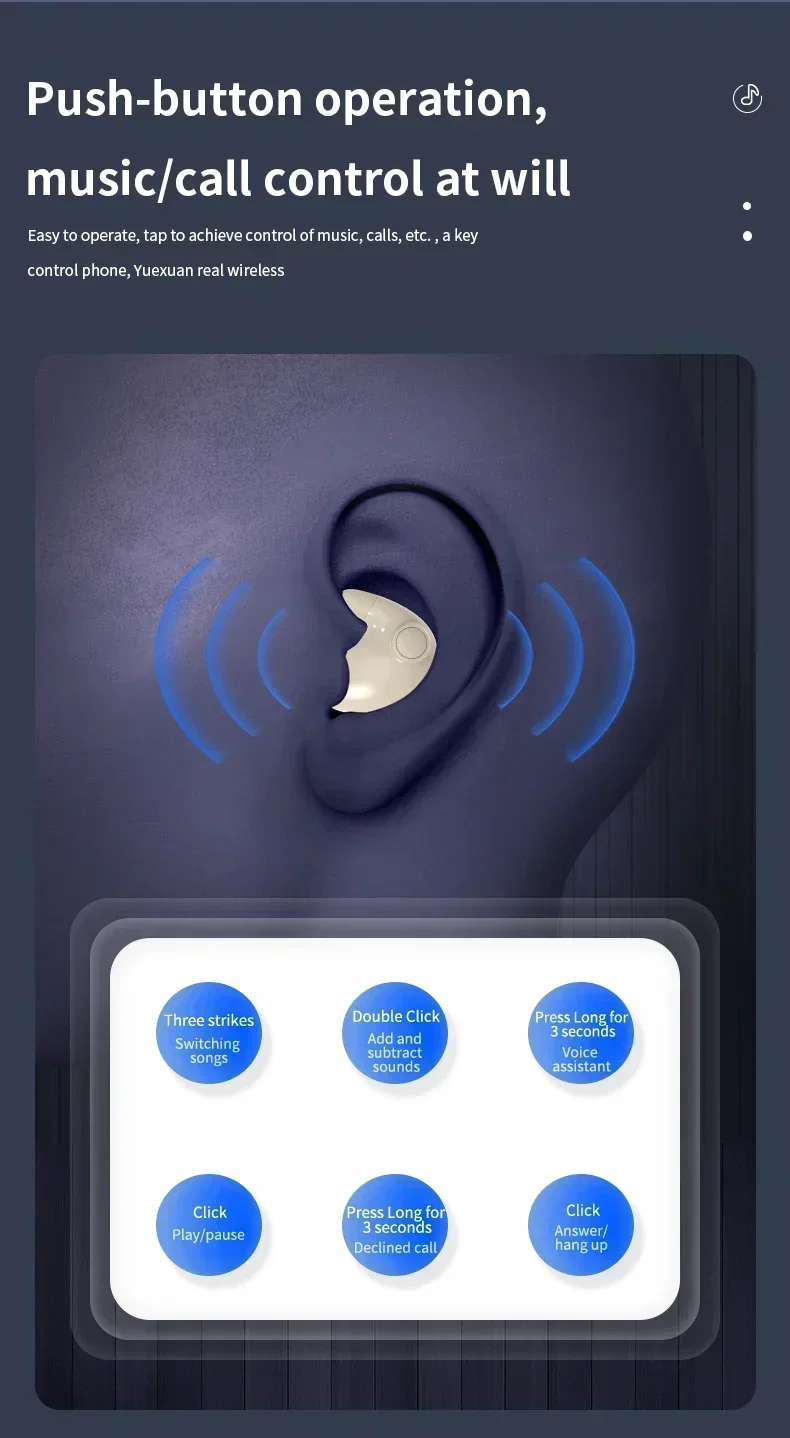 Sleep Invisible Stereo Headset IPX5 Waterproof Wireless Bluetooth Earphone Earbuds with Mic for Phone Bluetooth 5.3 Headphones