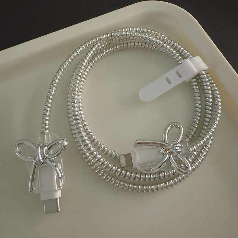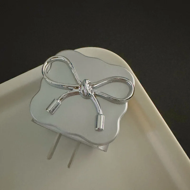 Luxury Electroplating Bowknot Charger Cover For IPhone 12 13 14 15 16 18/20W Charge Protection Cover Charger Sleeve Accessories