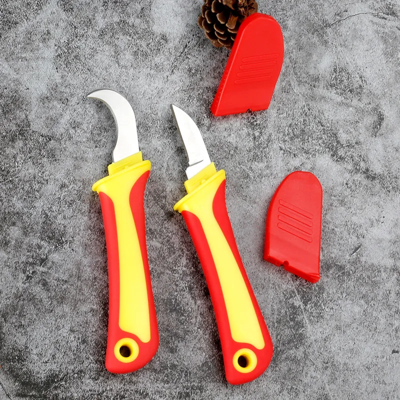 Electrician Knife Insulated Cable Stripping Snips Straight Curved Hook Fixed Blade Wire Stripper Peeling Hand Tool