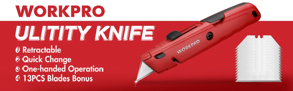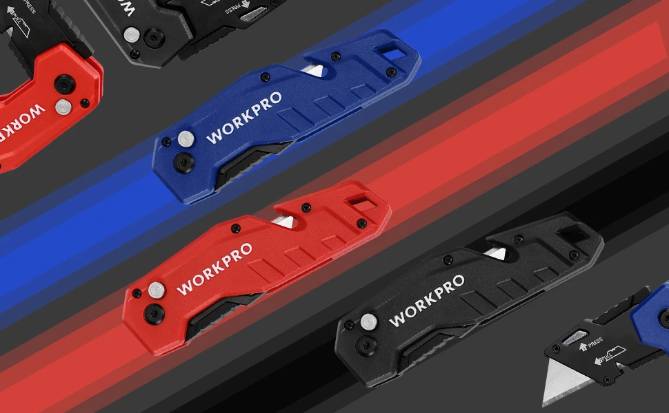 WORKPRO Folding Utility Knife Quick Change Blade Folding Knife Outdoor Camping Tool 10pcs blades included