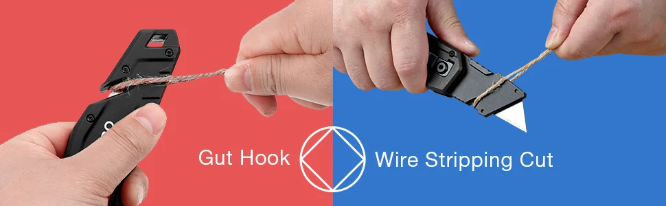 The back of the knife is designed with a hooking knife edge, when you close the knife, you can use it to strip the wire and cut the rope